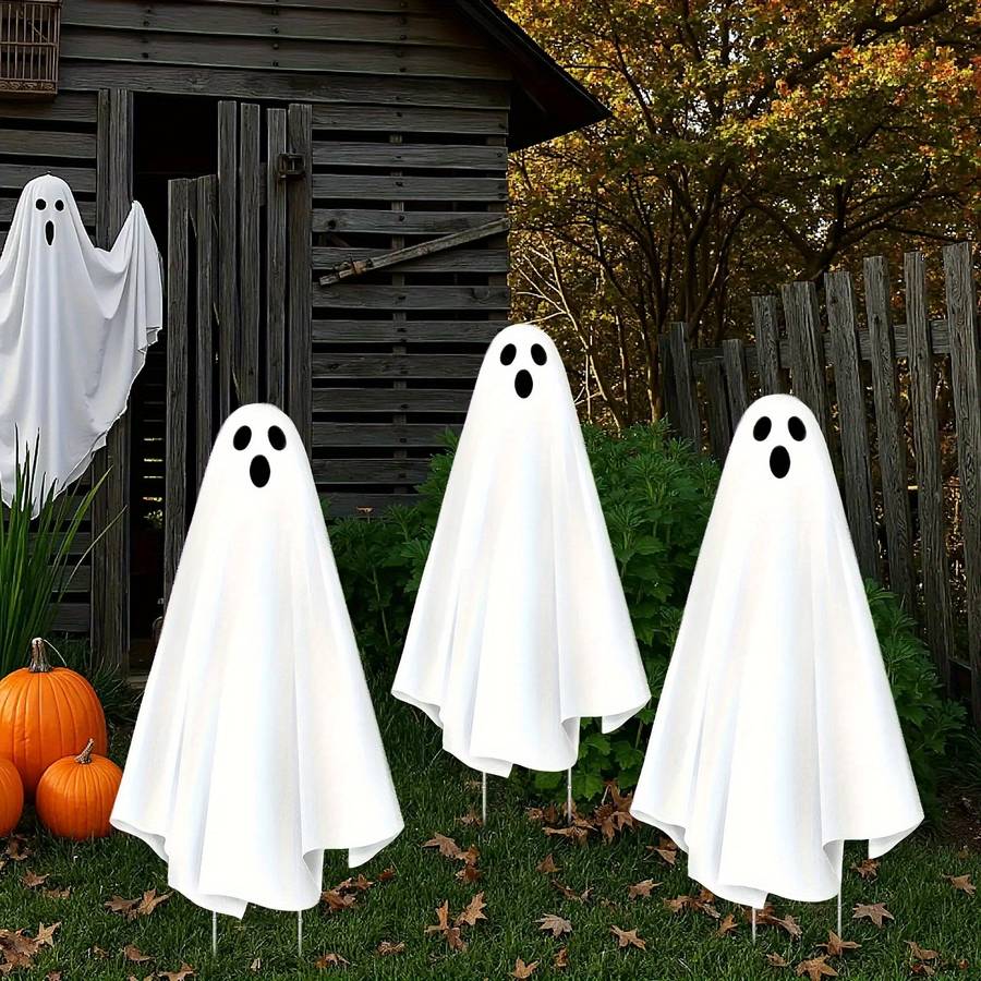 3pcs Extra Large Outdoor Haunted House Decoration Set with Stakes - Spooky White