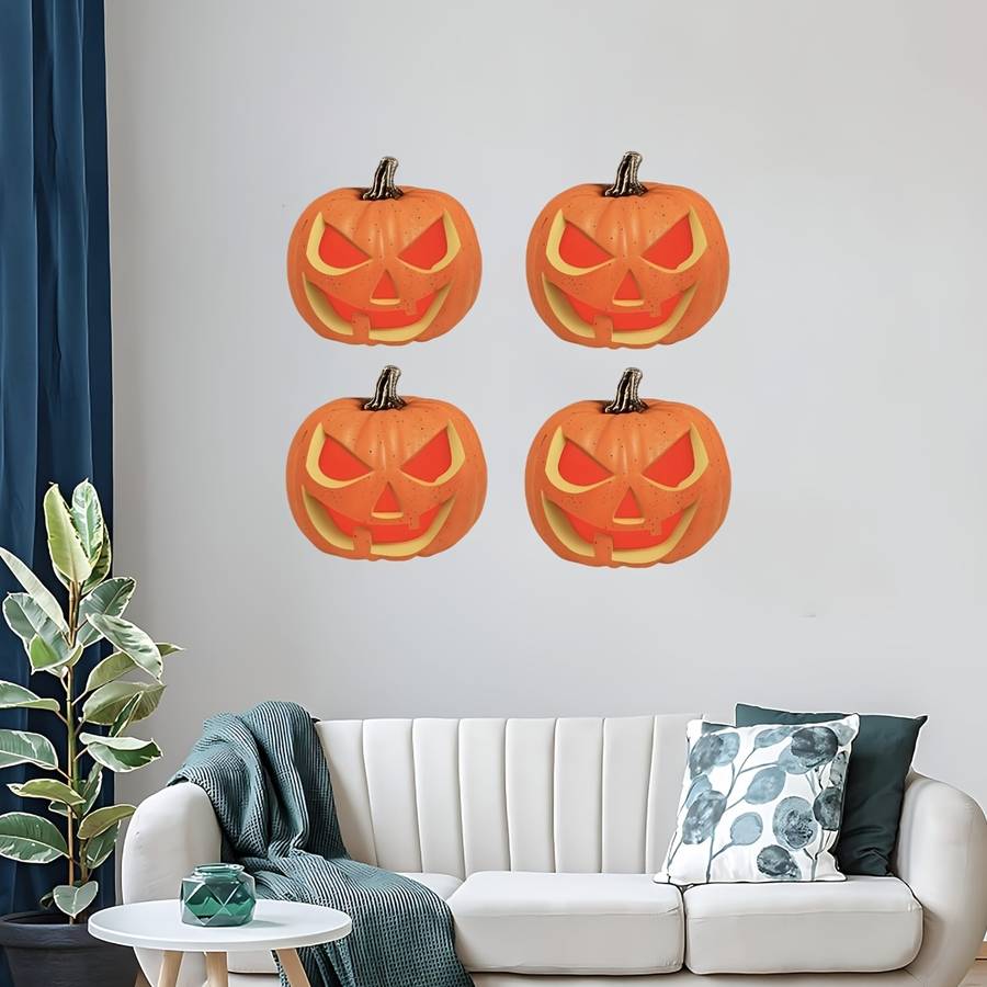 2D Flat, 4pcs Red-Eyed Pumpkin Scare Set, Lantern Halloween Garden, Manor Pumpki