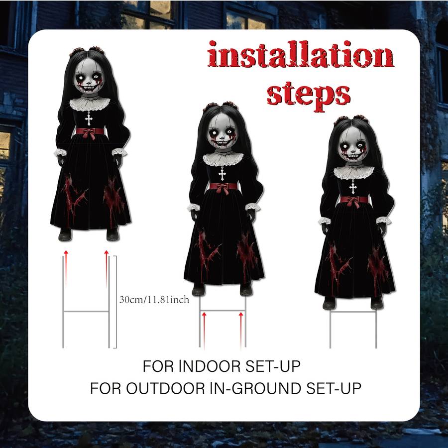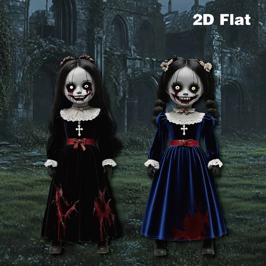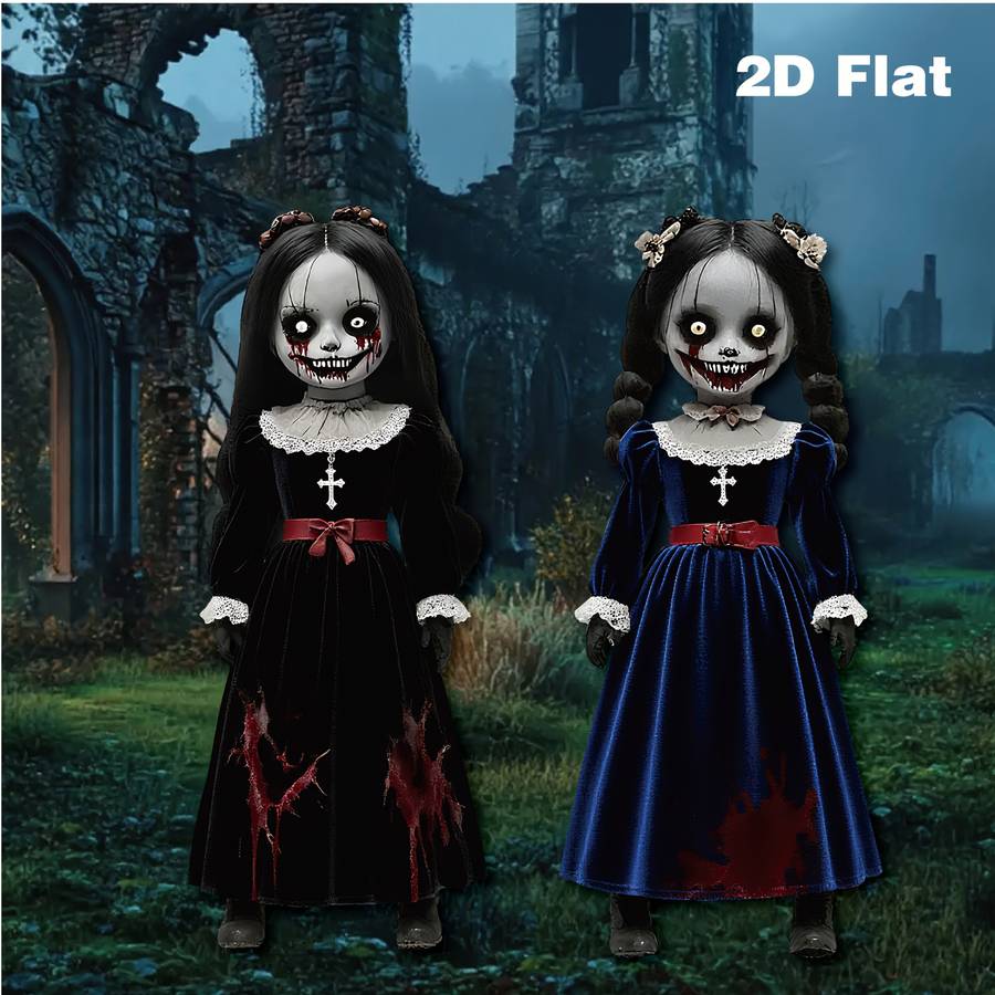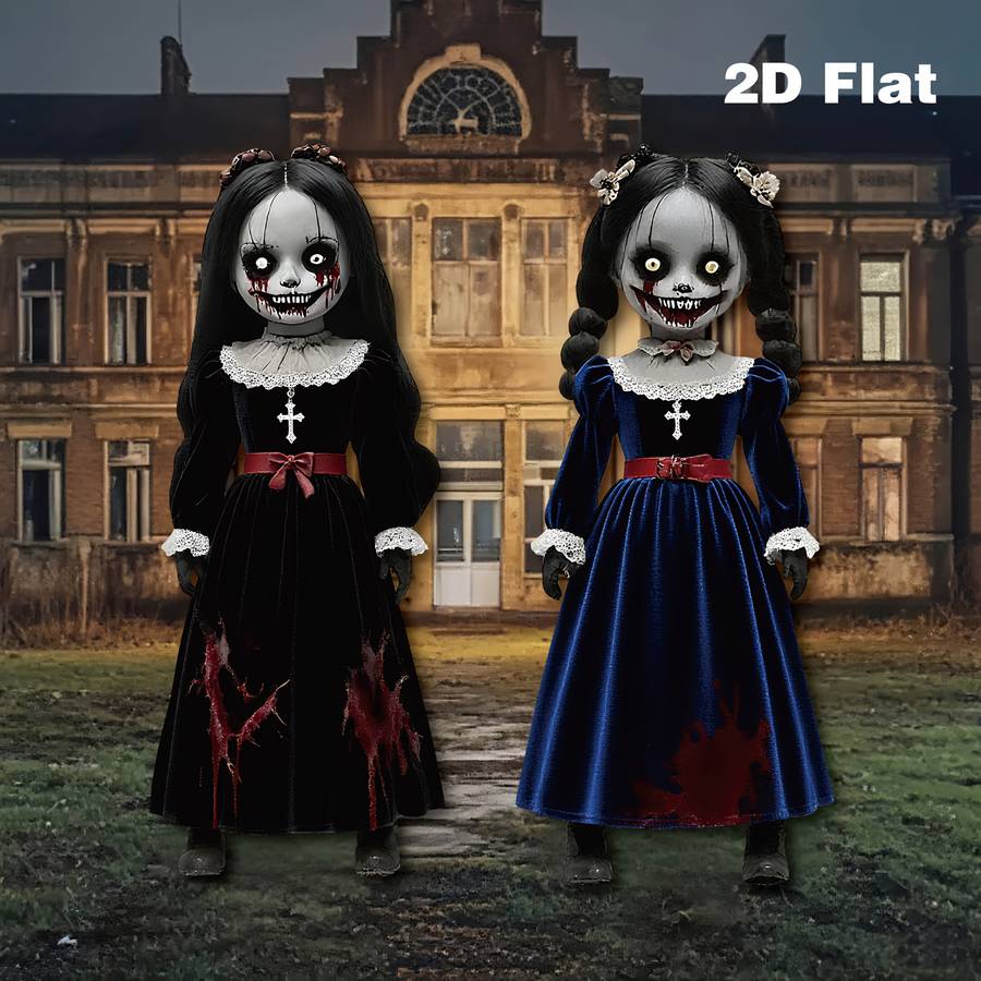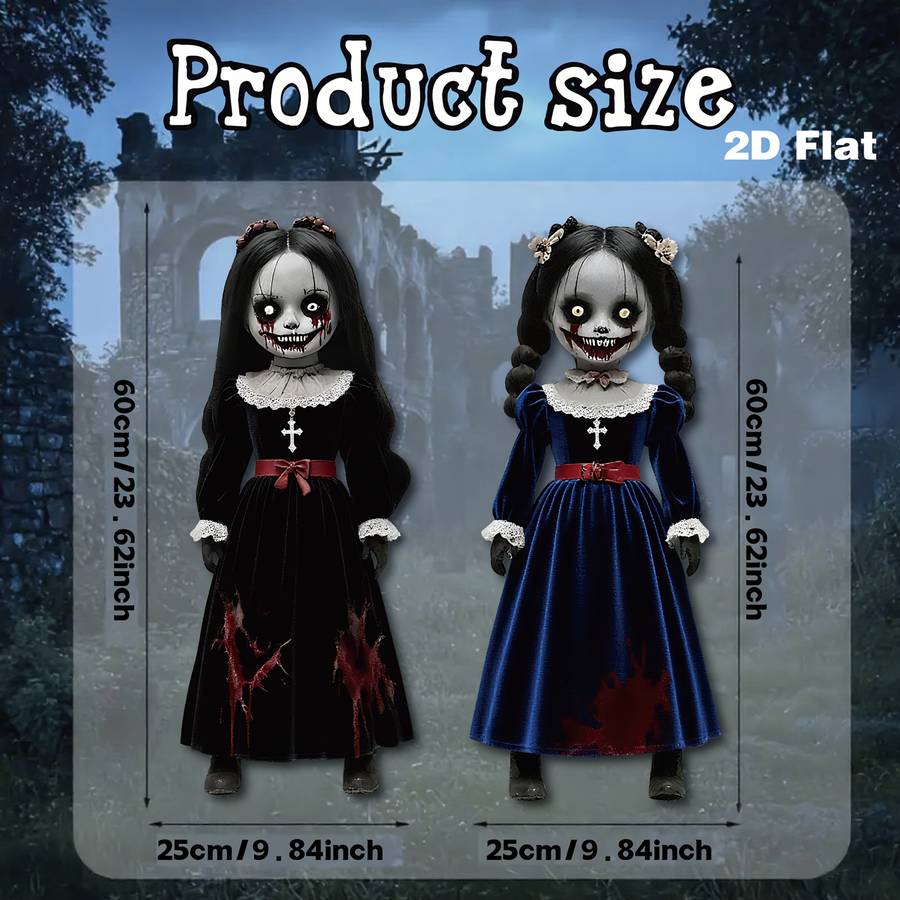 2D Flat, 2pcs Large Halloween Horror Dolls - Gothic Victorian-Style Scary 2D Fla