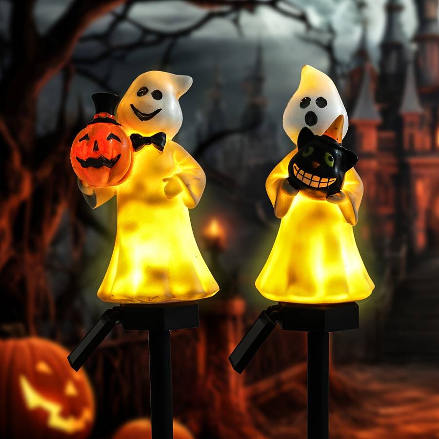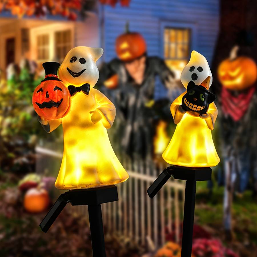 2pcs Halloween Spooky Holiday Outdoor Display Lights, IPX4 Solar Powered Spooky