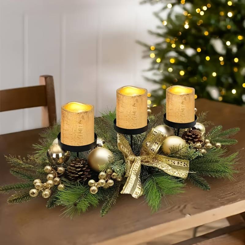 Autumn Harvest Pumpkin Candlesticks - Golden/Red Plastic Tabletop Decor for Hall
