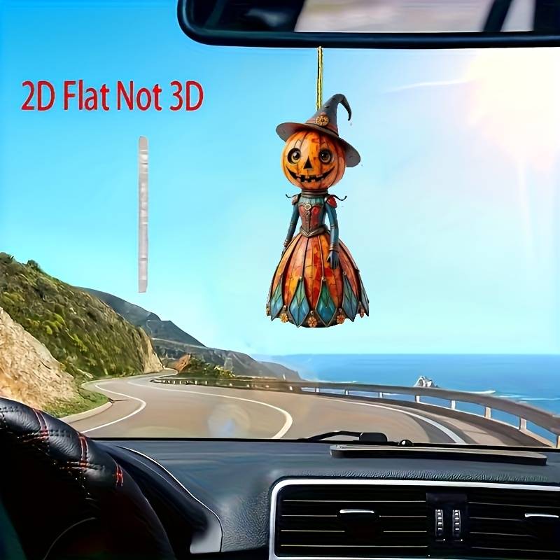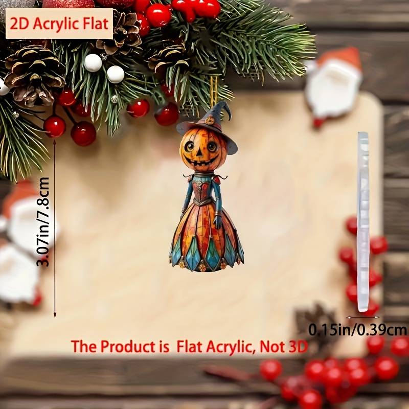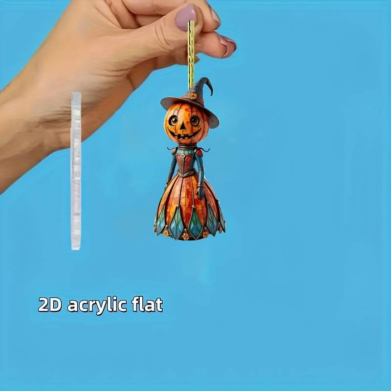 2D Flat, 2D Flat acrylic decoration - Charming painted pumpkin witch and purple