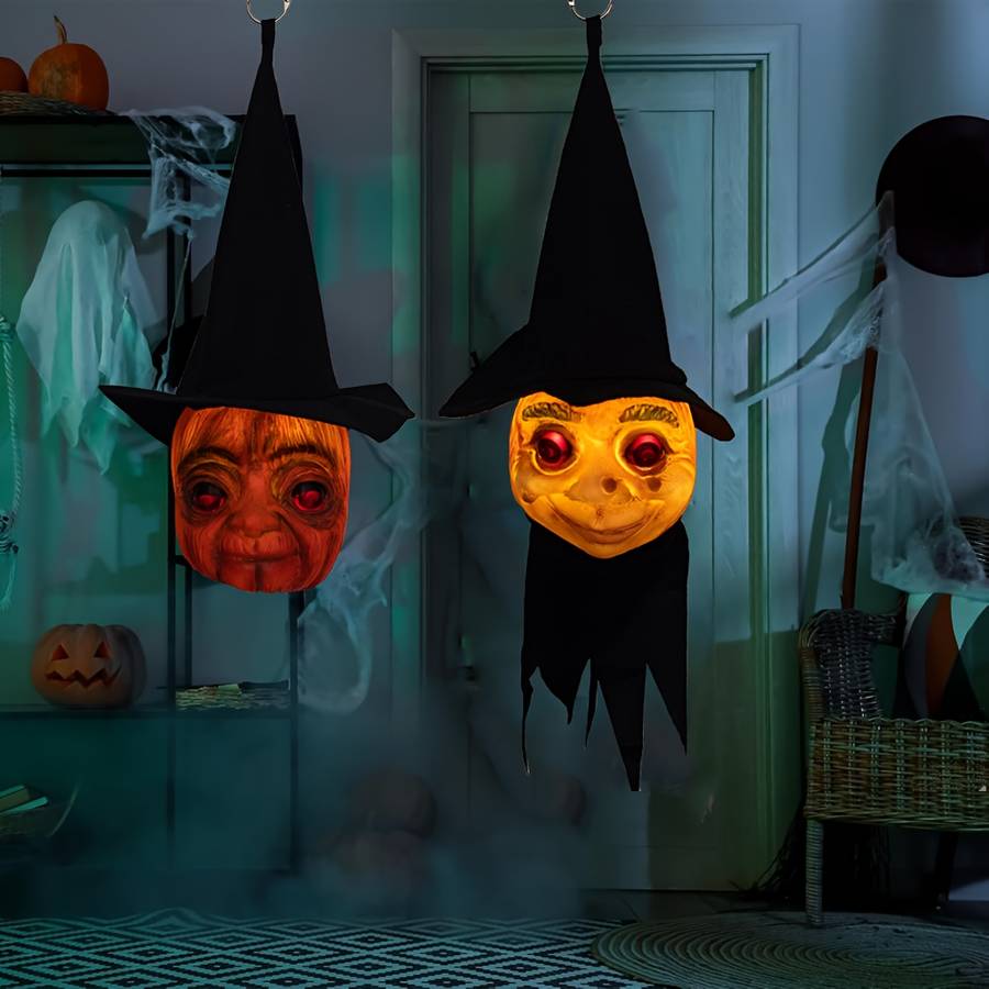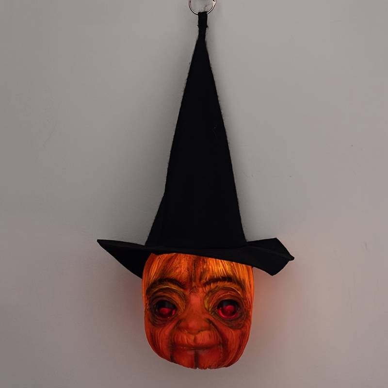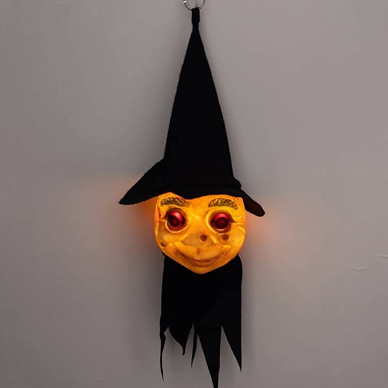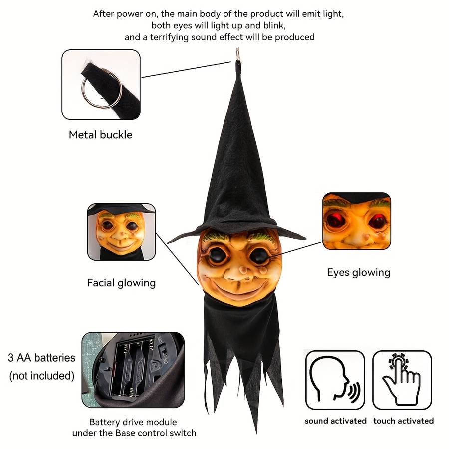 A Halloween Decoration Featuring a Witch with Red Eyes That Activates with Motio