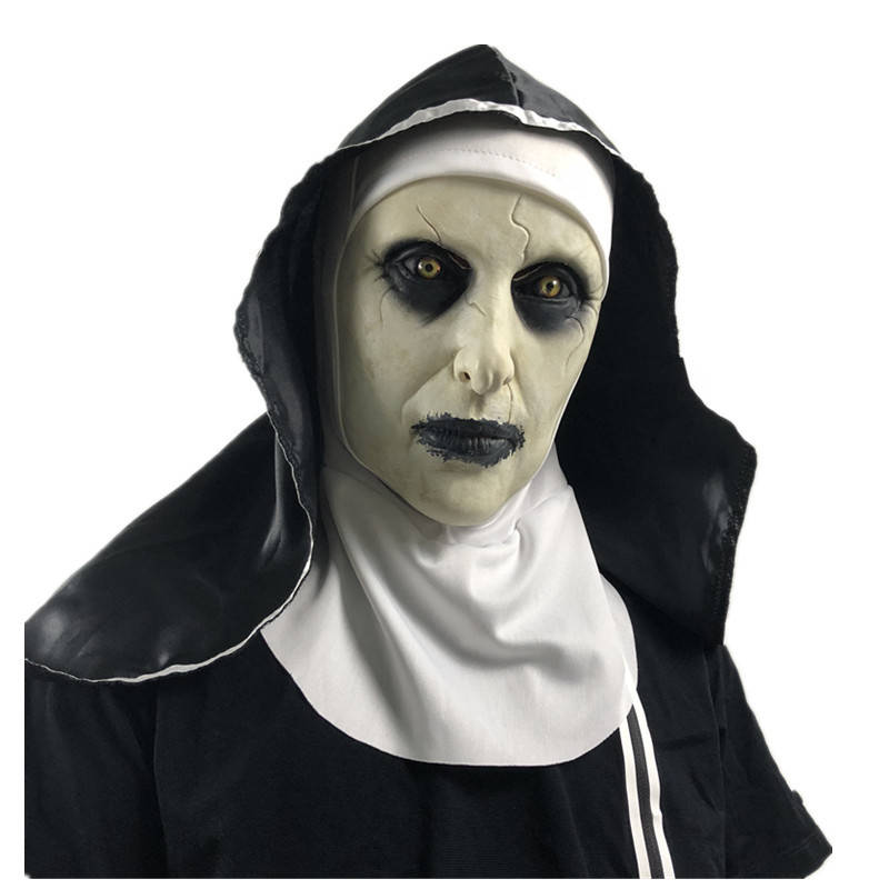 Halloween Scared Female Ghost Headgear Nun Horror Valak Scary Latex Mask Party Trick Props With Headscarf