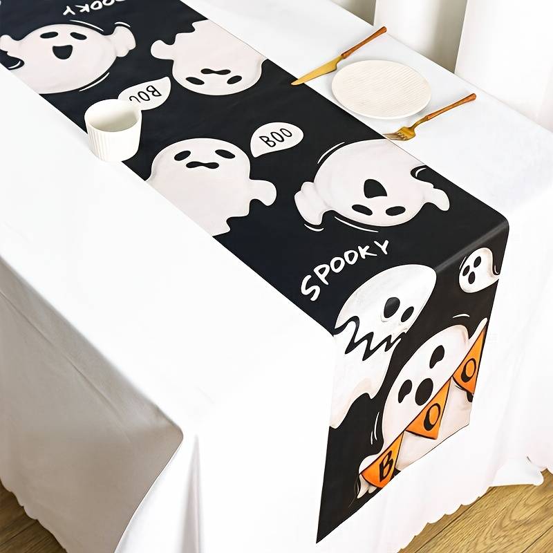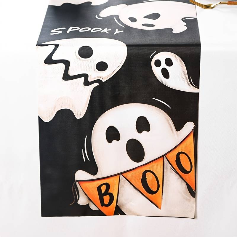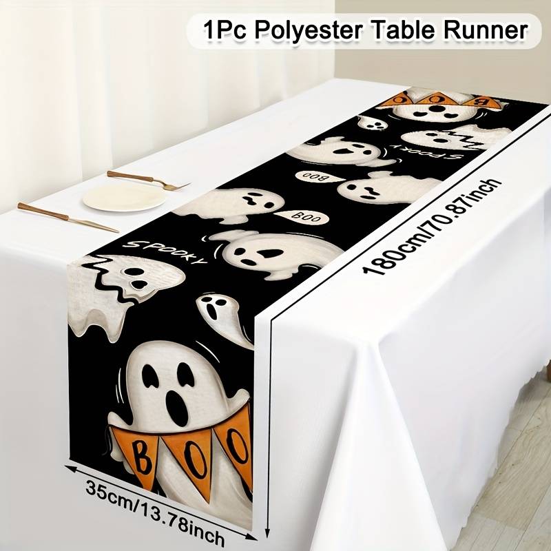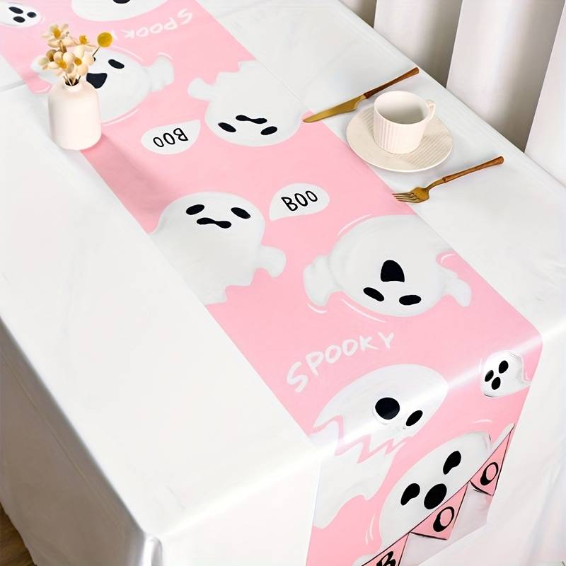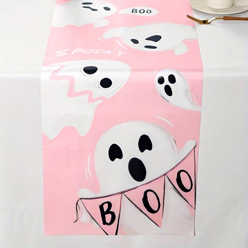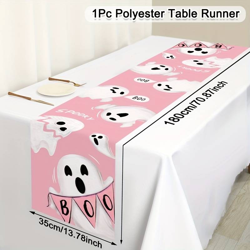 1pc Spooky Halloween Tablecloth 35x180cm - Polyester BOO Pink & Black with CartoWeave Type:Machine Made