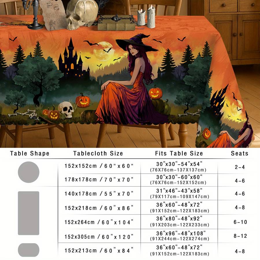 1pc Halloween Witch Tablecloth - Elegant Witch, Forest & Castle Design with OranShape:Rectangle