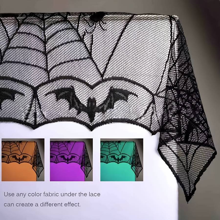 1/2/5pcs Black Spider Web Tablecloth - Halloween Spider Web Decor with Candles, Weave Type:Machine Made Material:Polyester Occasion:Generaling Fit Holidays:Halloween Pattern:Other Patterns Power Supply:Use Without Electricity
