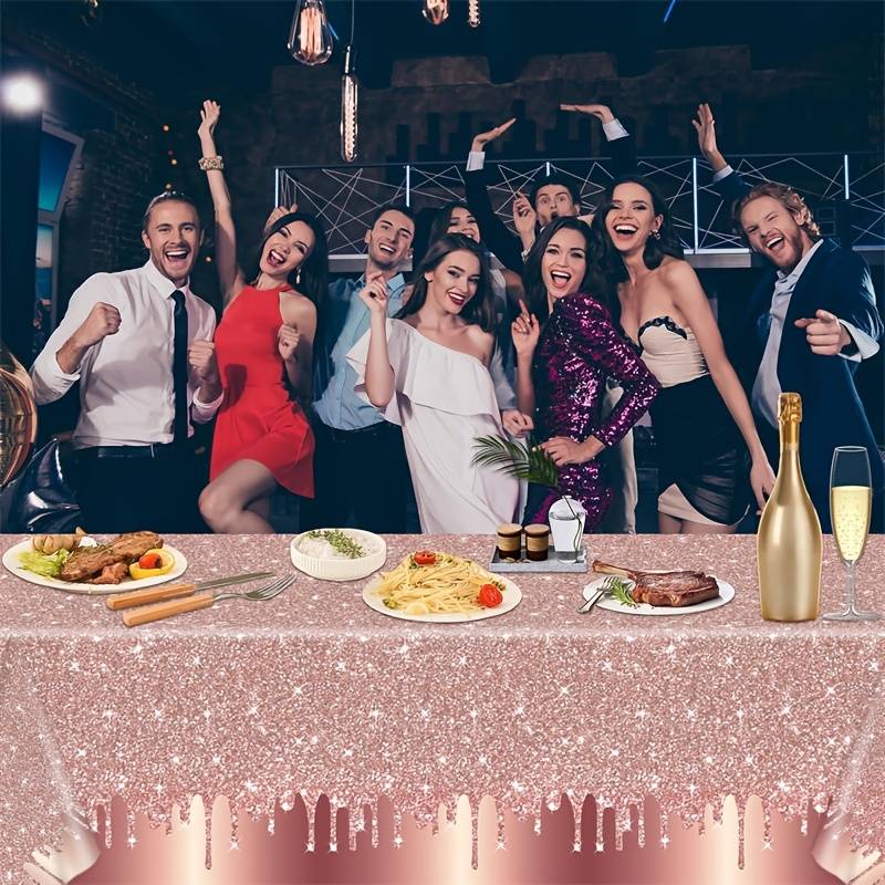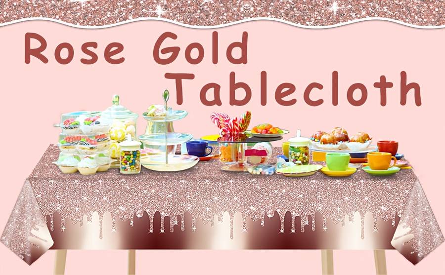 Halloween, Chrismas, 8/10pcs Rose Golden Birthday Party Tablecloth for Birthday Weave Type:Machine Made