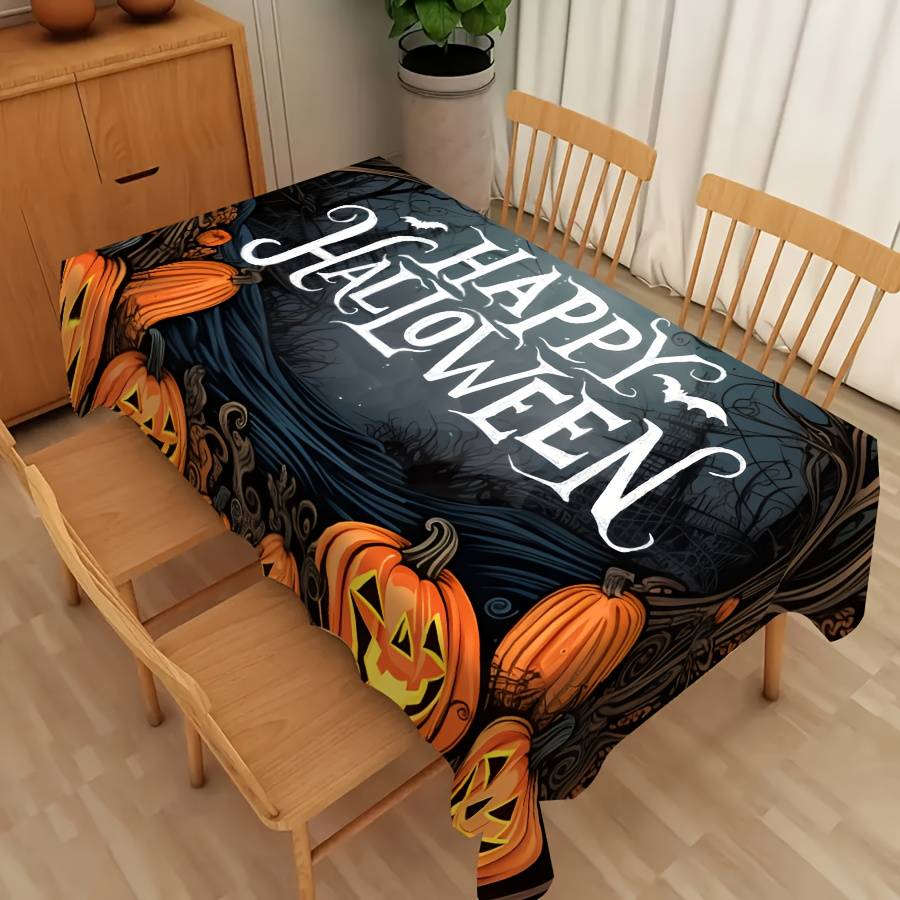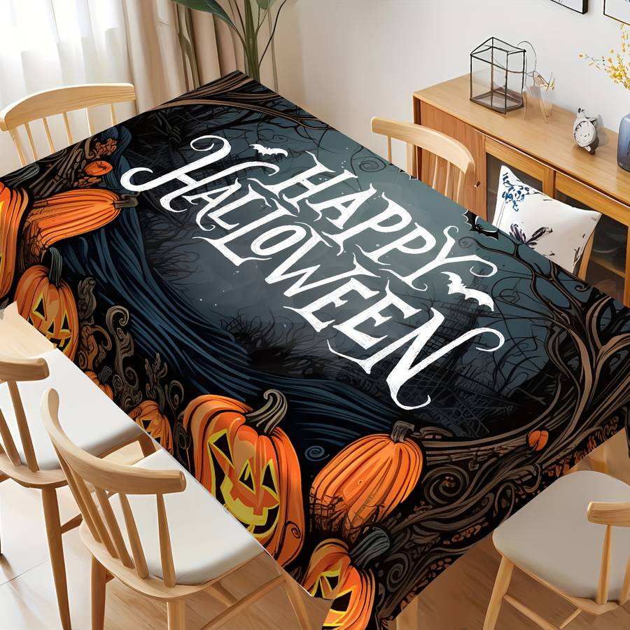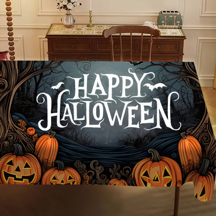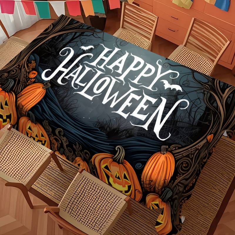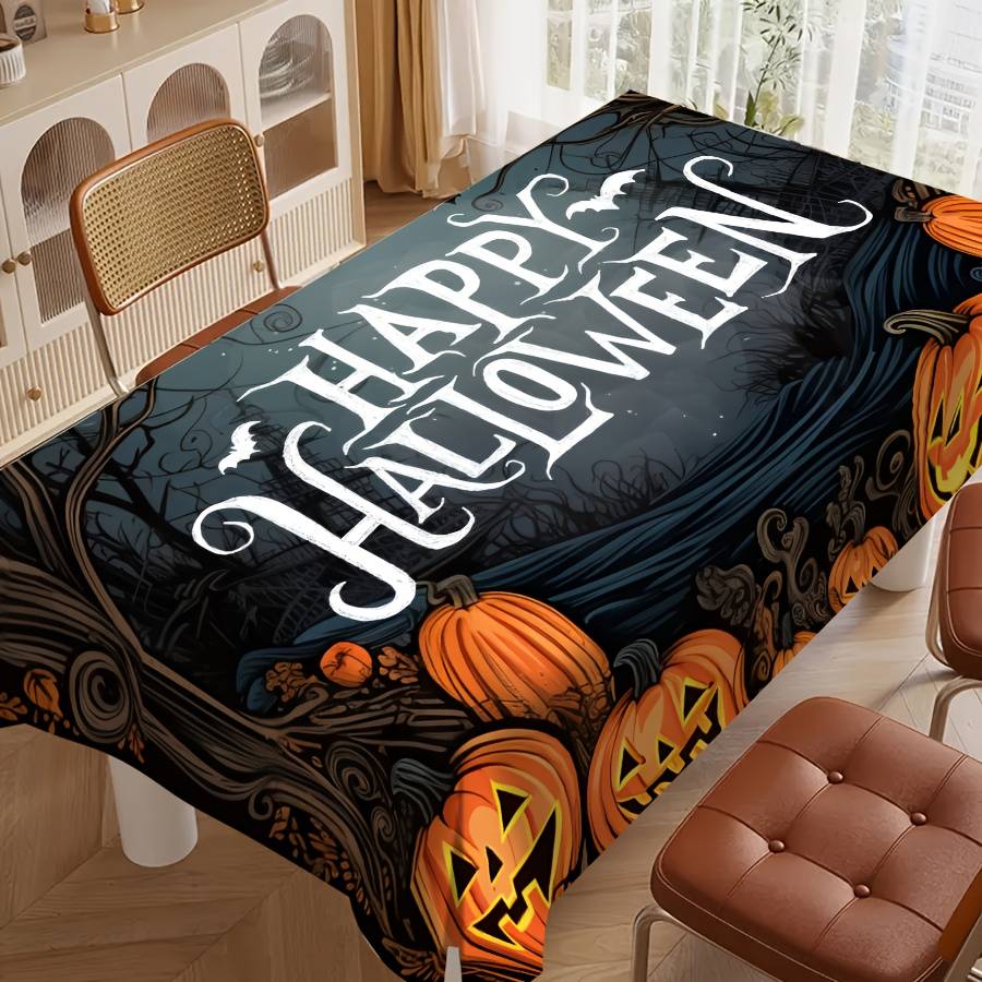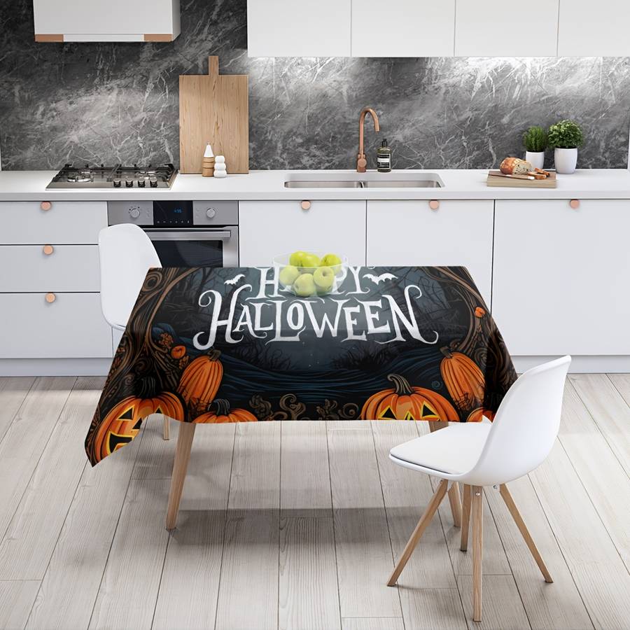 1pc Halloween Tablecloth - Spooky Pumpkin & Haunted House Design, Durable PolyesShape:Rectangle