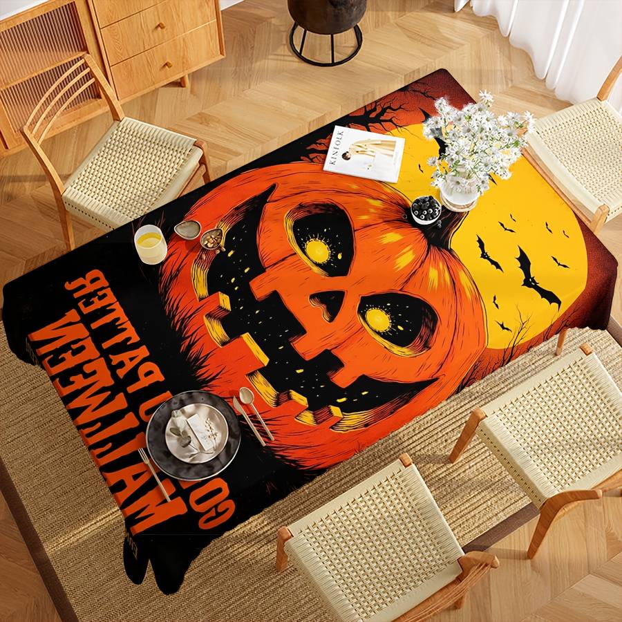 1pc HUAJI Halloween Tablecloth - Spooky Pumpkin & Black Cat Design, Durable PolyWeave Type:Machine Made