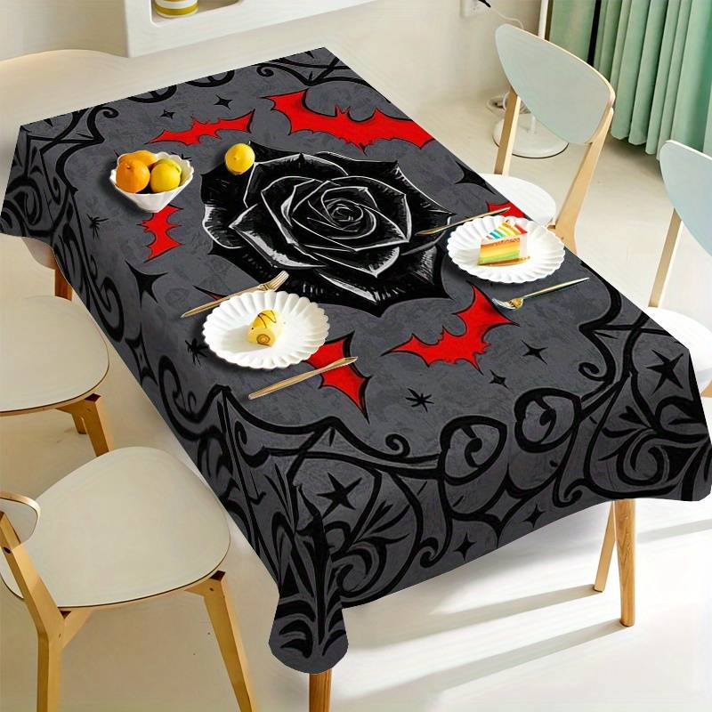 1pc Elegant Black Rose Polyester Tablecloth - Gothic Vintage Design with Red RosShape:Rectangle Weave Type:Machine Made Material:Polyester Cover Material:100% Polyester Weaving Method:Woven