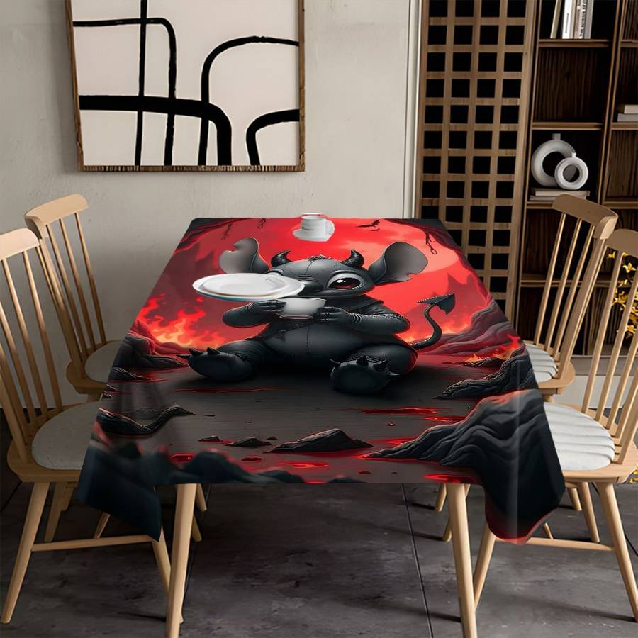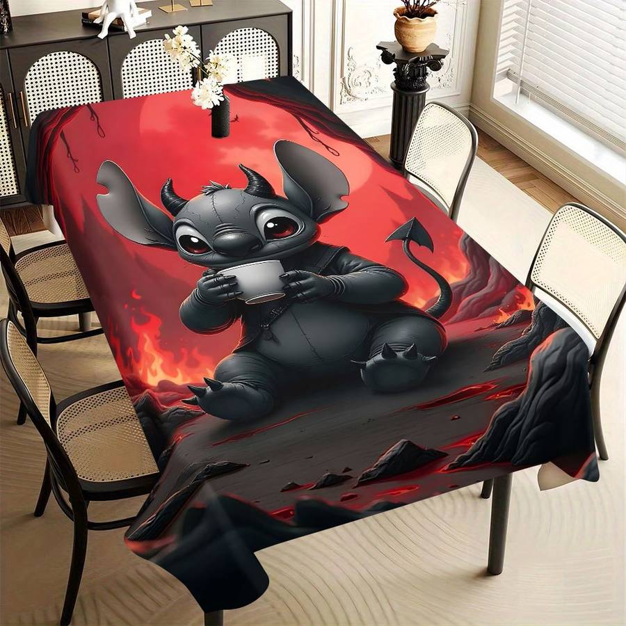 A Stitch-Themed Demonic Gothic Cartoon Rectangular Tablecloth Made of Scratch-ReShape:Rectangle Weave Type:Machine Made Material:Polyester Cover Material:100% Polyester Weaving Method:Woven