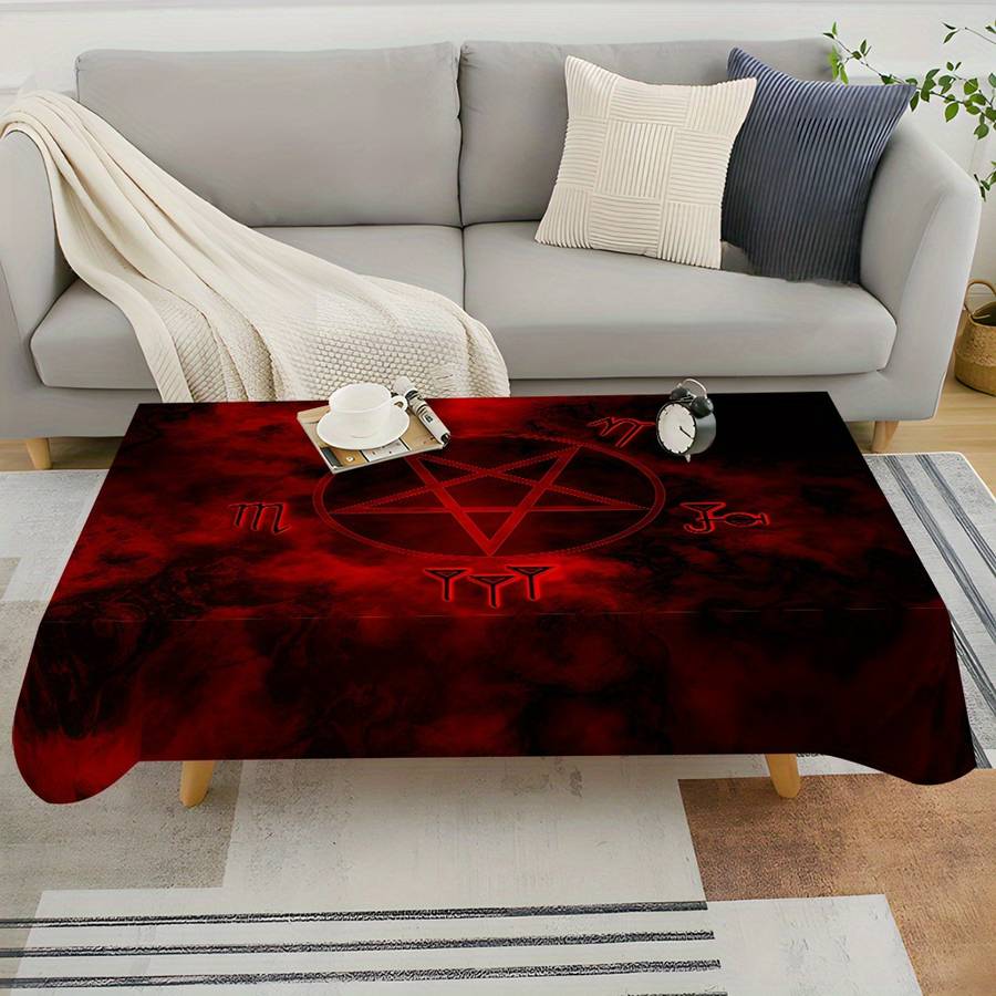 1pc Halloween Decor Red and Black Background with pentagram and Mystical Symbol Shape:Rectangle Weave Type:Machine Made Material:Polyester Cover Material:100% Polyester Weaving Method:Woven