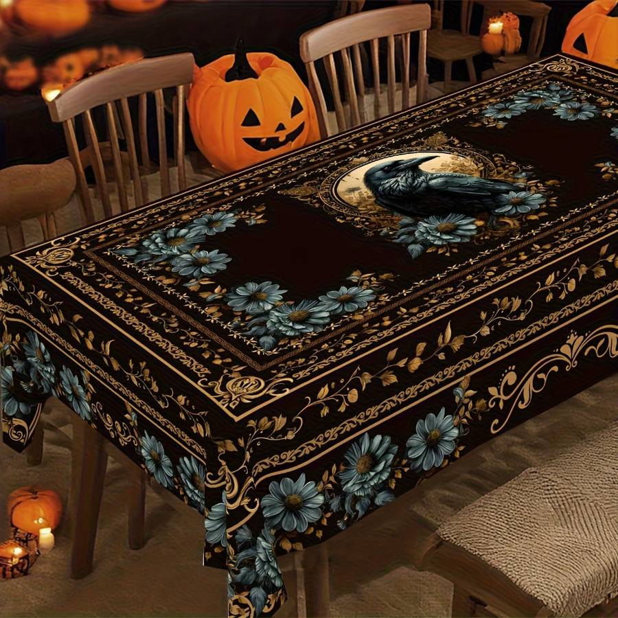1pc Gothic Halloween Tablecloth with Black Crows & Floral Design - Elegant PolyeWeave Type:Machine Made Material:Polyester Occasion:Generaling Fit Holidays:Halloween,Universal Pattern:Other Patterns Theme:Other Topics Composition:100% Polyester