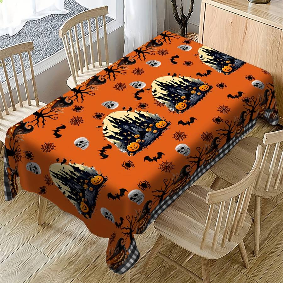 1pc Halloween Tablecloth - Vibrant Orange with Black & White Pumpkins, Bats, SpiShape:Rectangle Weave Type:Machine Made Holidays:Halloween Material:Polyester Cover Material:100% Polyester Filling Material:100% Polyester Lining Material:100% Polyester Weaving Method:Woven