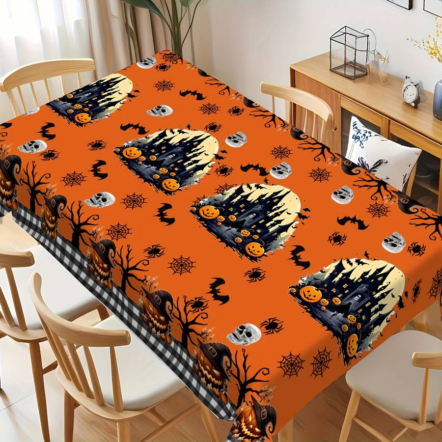 1pc Halloween Tablecloth - Vibrant Orange with Black & White Pumpkins, Bats, SpiShape:Rectangle Weave Type:Machine Made Holidays:Halloween Material:Polyester Cover Material:100% Polyester Filling Material:100% Polyester Lining Material:100% Polyester Weaving Method:Woven