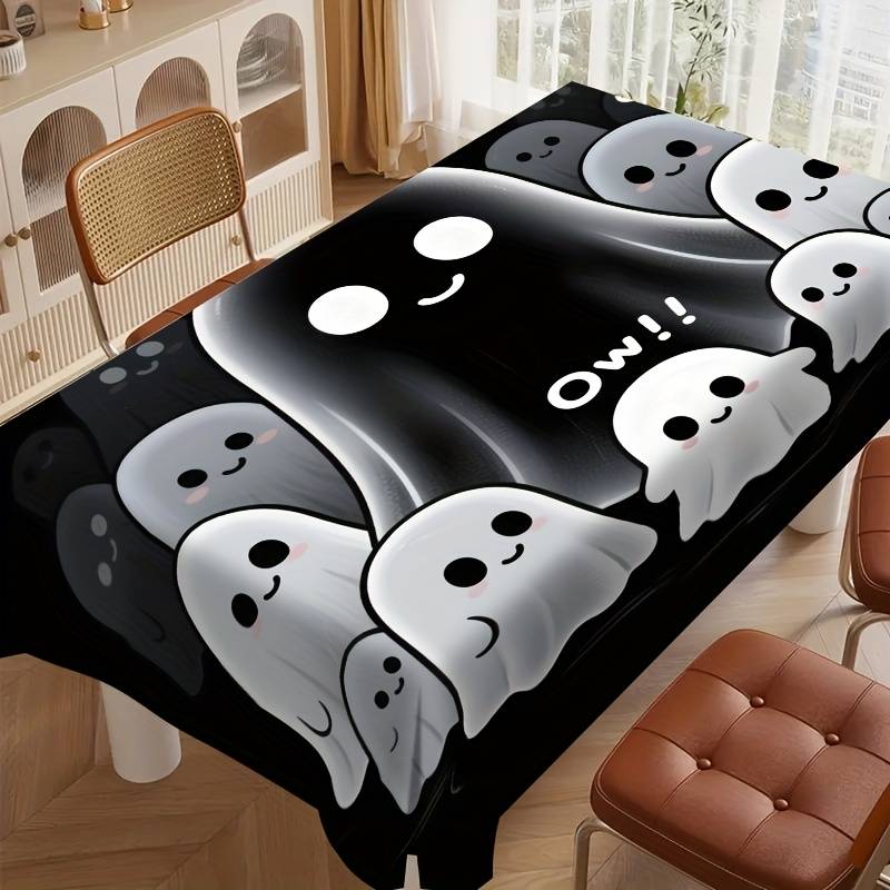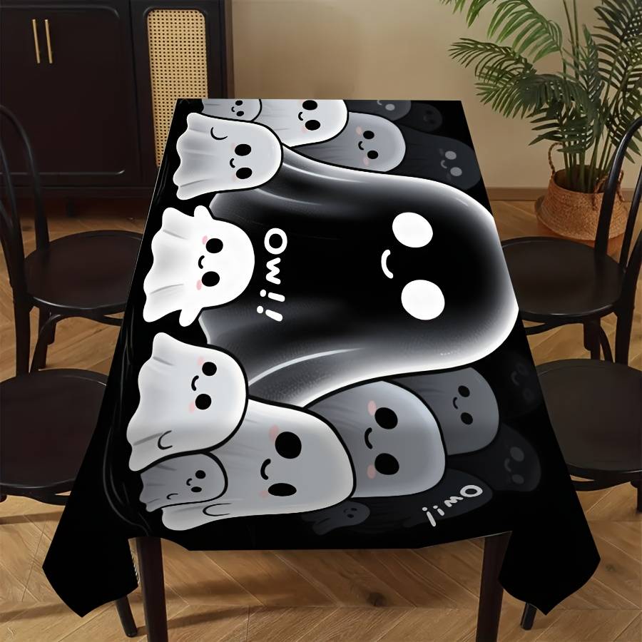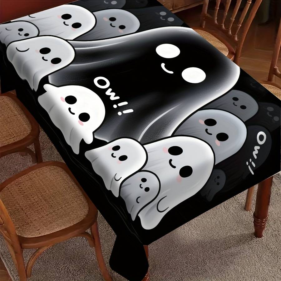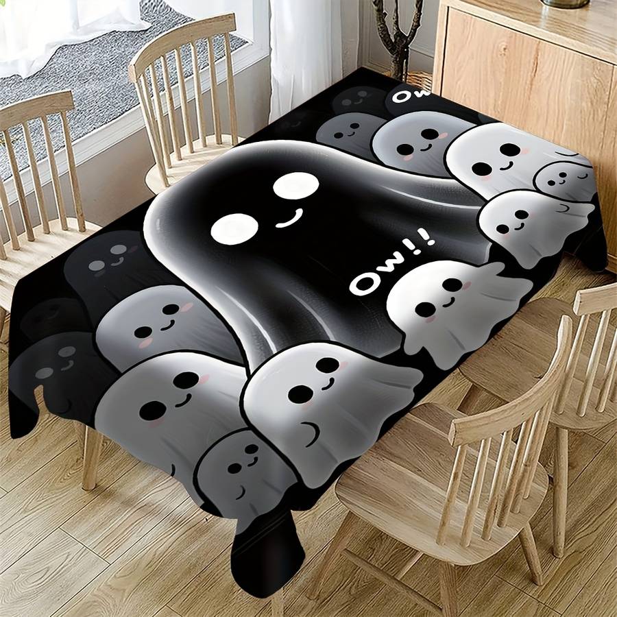 1pc Adorable Cartoon Ghost Tablecloth, Halloween Theme, Polyester, Rectangular, Shape:Rectangle