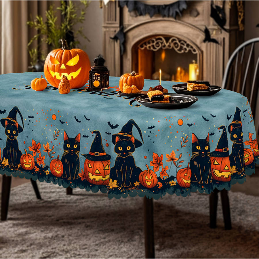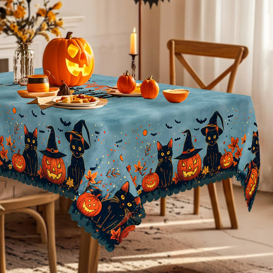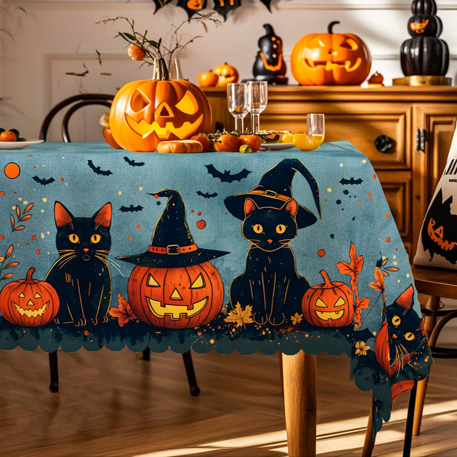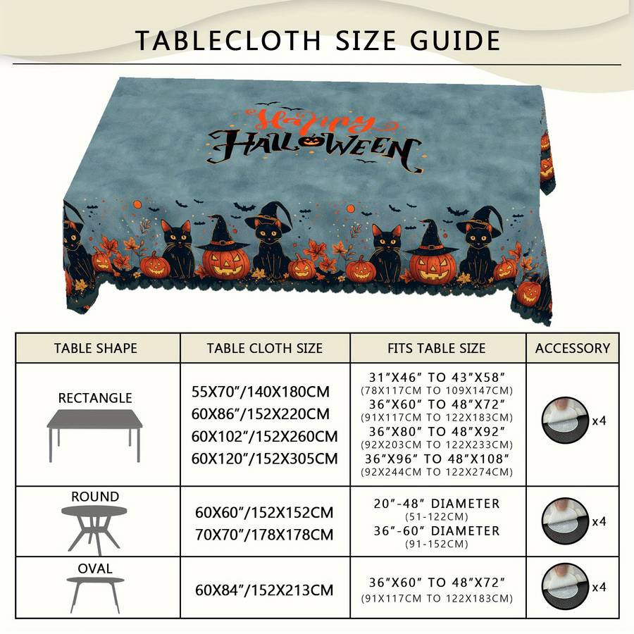 Happy Halloween Tablecloth, Vintage Black Cat Pumpkin Butterfly Bat Polka Dot DeShape:Rectangle Weave Type:Machine Made Material:Polyester Cover Material:100% Polyester Weaving Method:Woven