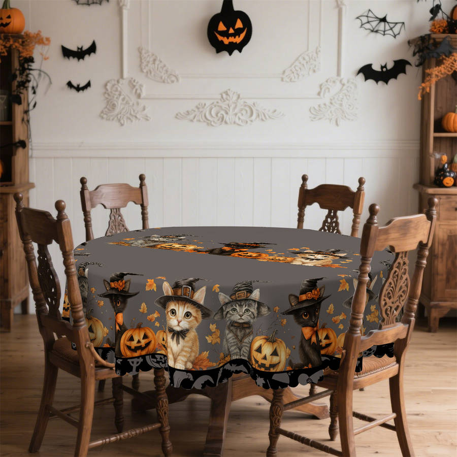 1pc Halloween Cat Wizard Hat Tablecloth - Black with Orange Pumpkins, Bats & LeaShape:Rectangle Weave Type:Machine Made Holidays:Halloween Pattern:Graphic Material:Polyester Cover Material:100% Polyester Weaving Method:Woven
