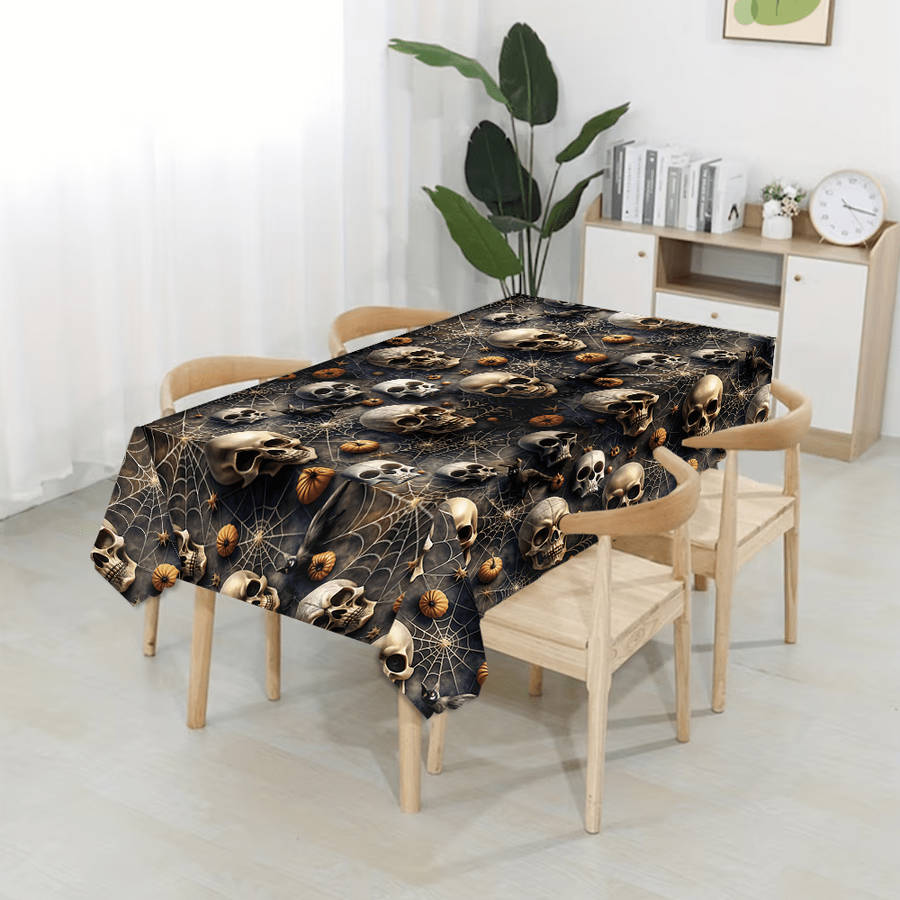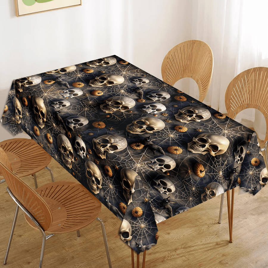 1pc Halloween Skull Party Tablecloth - 179.83cm x 139.95cm Black Polyester TableWeave Type:Machine Made