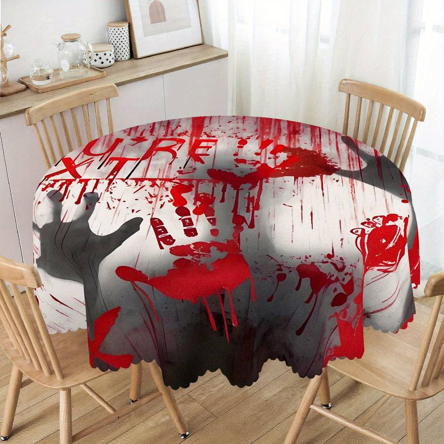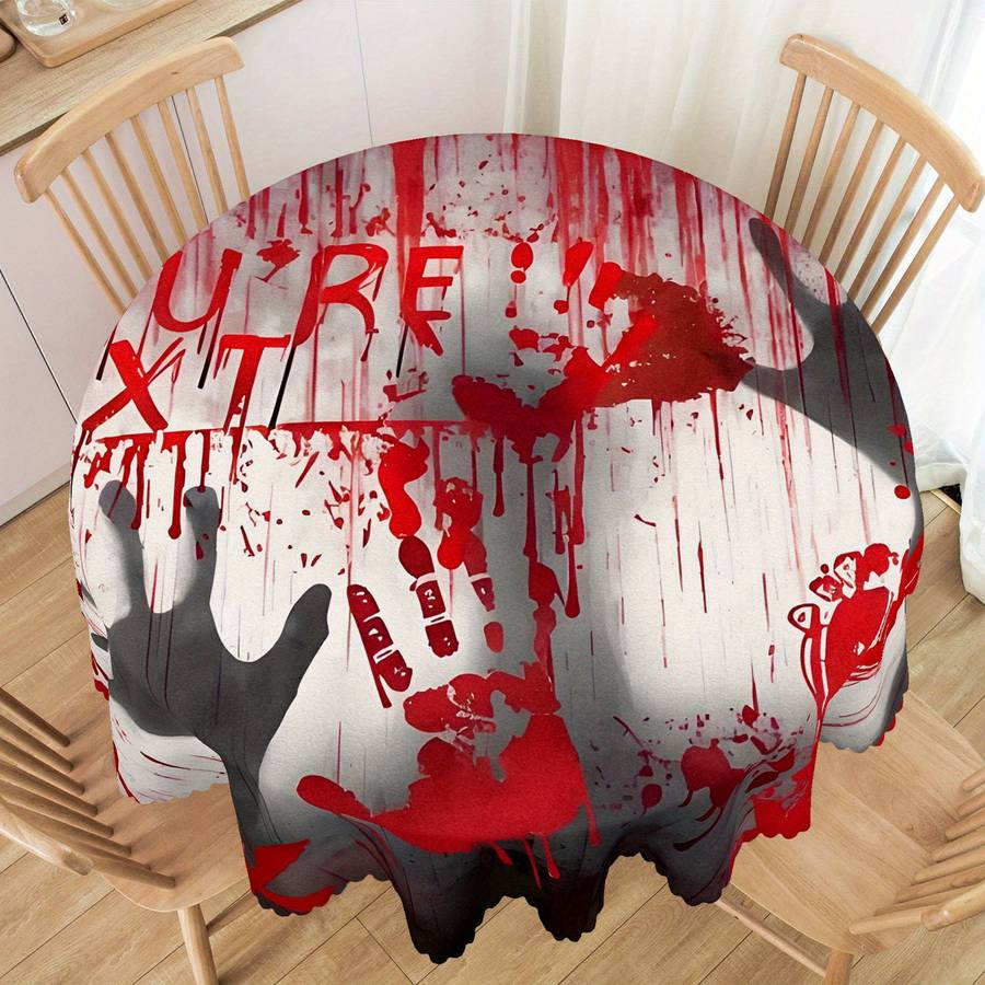 1pc Horror Tablecloth - Blood Splatter Halloween Party Decorations, Machine WashShape:Round Weave Type:Machine Made Material:Polyester Cover Material:100% Polyester Weaving Method:Woven