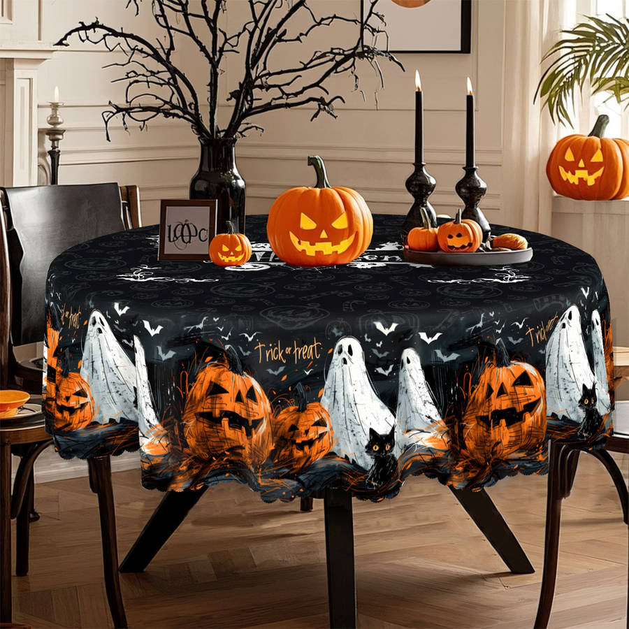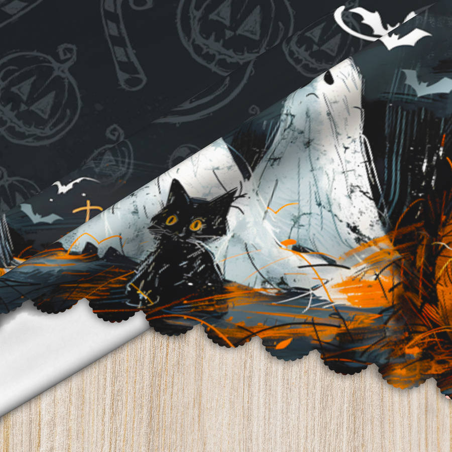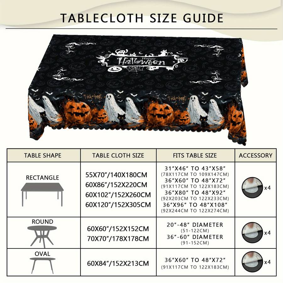 Vintage Halloween Tablecloth with Spooky Pumpkin, Black Cat, and Bat Design - PeShape:Rectangle Weave Type:Machine Made Holidays:Halloween Material:Polyester Cover Material:100% Polyester Weaving Method:Woven