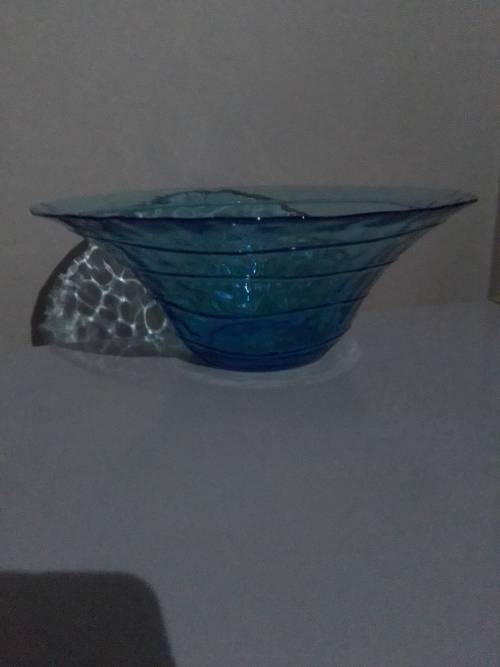 Outstanding All Hand blowen and with the same Motif. Aqua Blue Centerpiece Glass bowl. Size: 110mm Tall x Dia 285mm + Clear hand blowen Bowl 190mm Across and the large blue ornate Vase 225mm Tall plus the smaller blue Vase 165mm Tall. Sold as good used secondhand. The Oranges are for demo only.