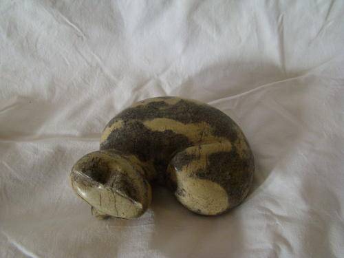 Lovely hand carved stone cat ornament. Marking underneath 'SIMORIRO' Lovely detail Width 15cm and height 7cm. Lovely condition
