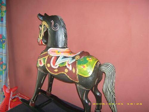 This rocking horse was made somewhere in the 1940's. Hand carved and painted with stunning detail. Postage charged at R75-00.