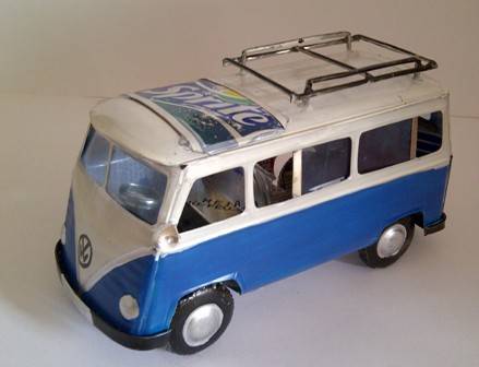 Hand Crafted Metal Tin Replica of a Blue & White Combi