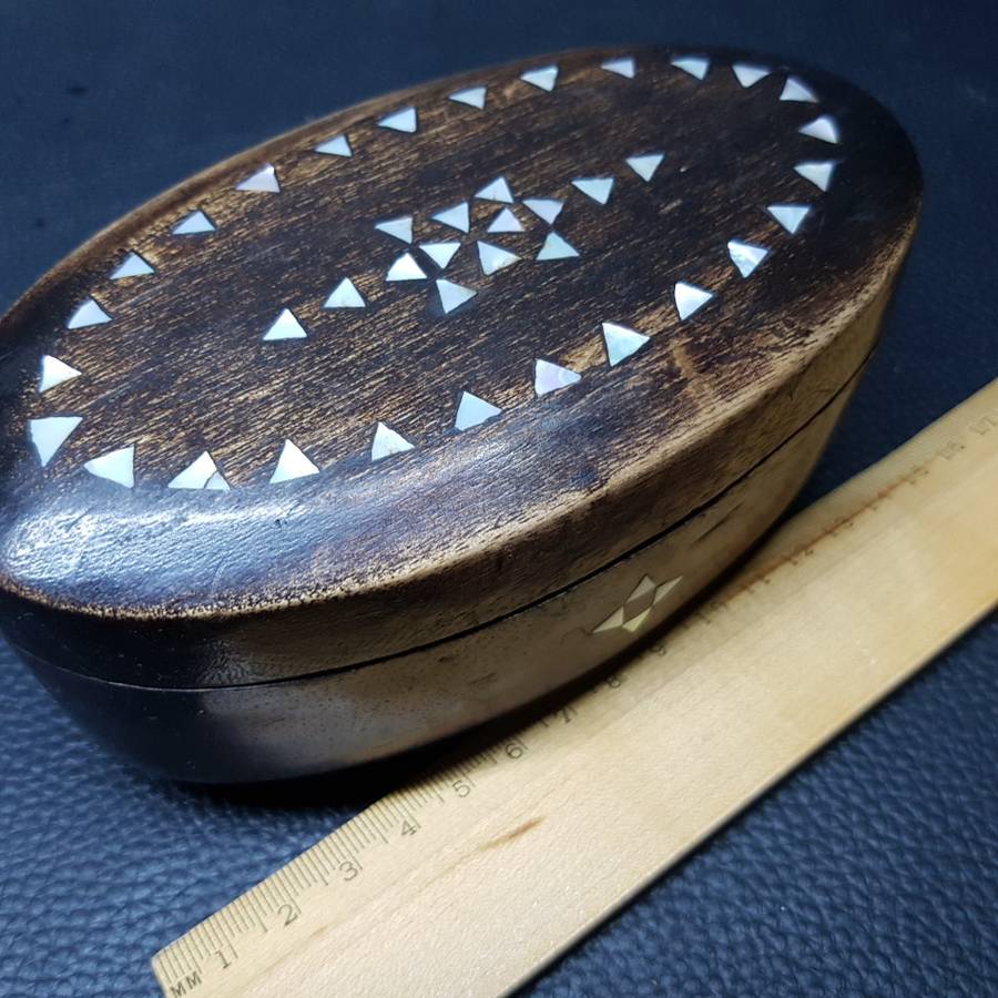 Hand Crafted Wood with Mother of Pearl Trinket Box