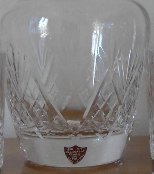 HAND CUT SOMERSET CRYSTAL DECANTER AND 4 WHISKY GLASSES