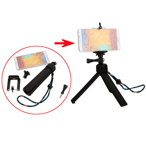 Package weight: 0.13 kg Hand Held Folding Tripod Monopod Self-stick for Xiaomi Yi Action Camera Description: 360 degree rotation. Material: rubber Can be a tripod and a monopod. Fit for XiaoYi action camera, Gopro series, SJCAM series. Package Included: 1 X Hand-held Folding Tripod