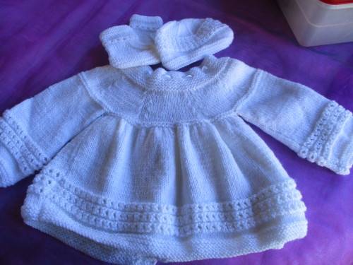Hand Knitted 4 piece Matinee Set in White to fit 3-6mnths