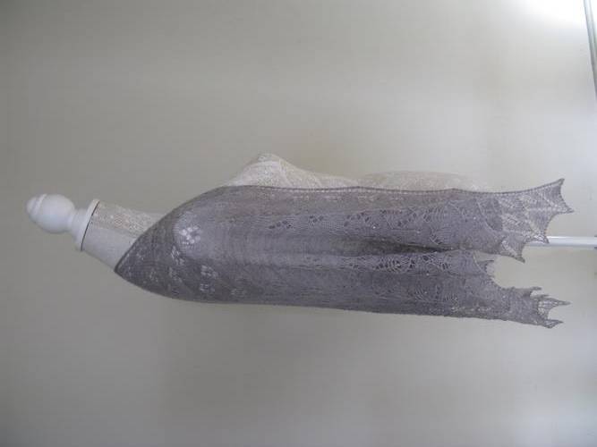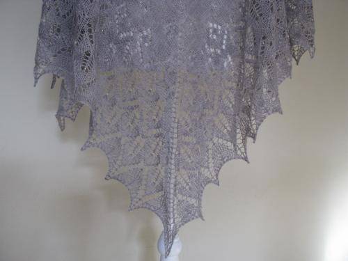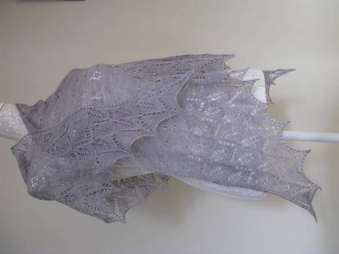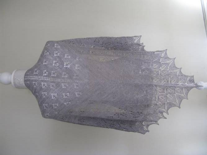 A beautiful expertly knitted lace shawl named "Silver mist".