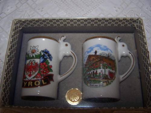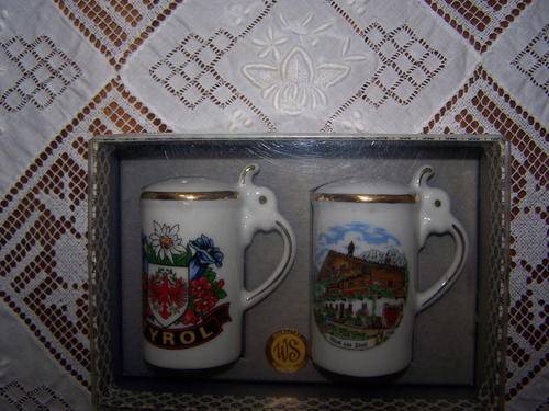 This lovely gift boxed salt & pepper set is in excellent (unused) condition. It was made in Tirol, Austria.