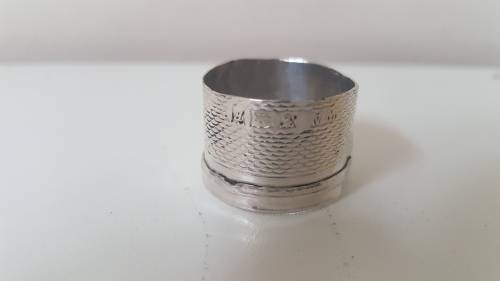 Engine turned pattern on sides of band and with full hallmark on band as well.