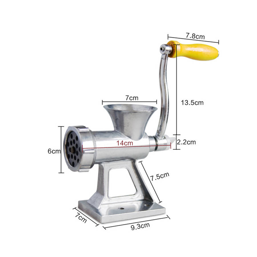 Description : Hand Operated Kitchen Manual Meat Grinder Beef Noodle Mincer Sausages Maker Meat Tool - Low noise, handy operation - Easy to dismantle and clean - Multi-functional manual meat mincer - Fast and efficient way to handle your meat - Best choice for restaurant, hotel, canteen, and butcher. - Stable base allows you to place on the flat kitchen counter - Need to assemble it yourself, easy installation, do not worry - Good tools to be twisted diced meat, noodles, sausages, etc. - Can be also used for ground meat, enema, twisted vegetables, broken stuffing Tips : Try to remove the skin and bones and then twist, because this kind of food is easy to cause the blockage of the meat tube. Commonly used meat, please try to remove the ribs and cut into 2cm thick strips according to the texture. Specification : Color: Silver Material: Aluminum Die Casting Size: As picture shown Package Included : 1 xManual Meat Grinder Kit Set