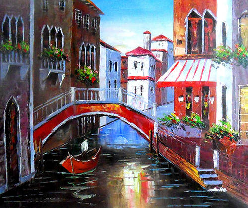 Hand-painted Canvas Signed Oil Painting 60CMX50CM Venice City Building HD112