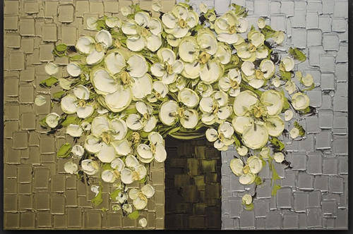 Hand-painted Heavy Texture Oil Painting 90cmx60cm Flowers Abstract Deco Art HS007