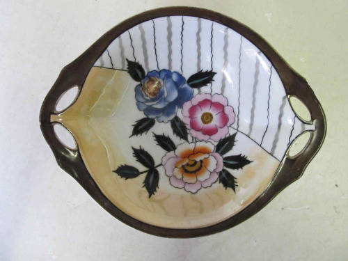 A lovely vintage hand-painted bowl made in Japan by Noritake. The base mark was registered in 1918 and used until about 1940. Condition good. Size: 197 x 162 x 45 mm.