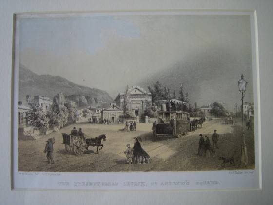 Shows Somerset Road with the Presbyterian Church in St. Andrew's Square. Although the church is still there, largely unchanged, Somerset Road has changed a lot in the intervening century and a half! Interestingly the tram track depicted has just been partly excavated and now can be see again on part of Somerset Road.