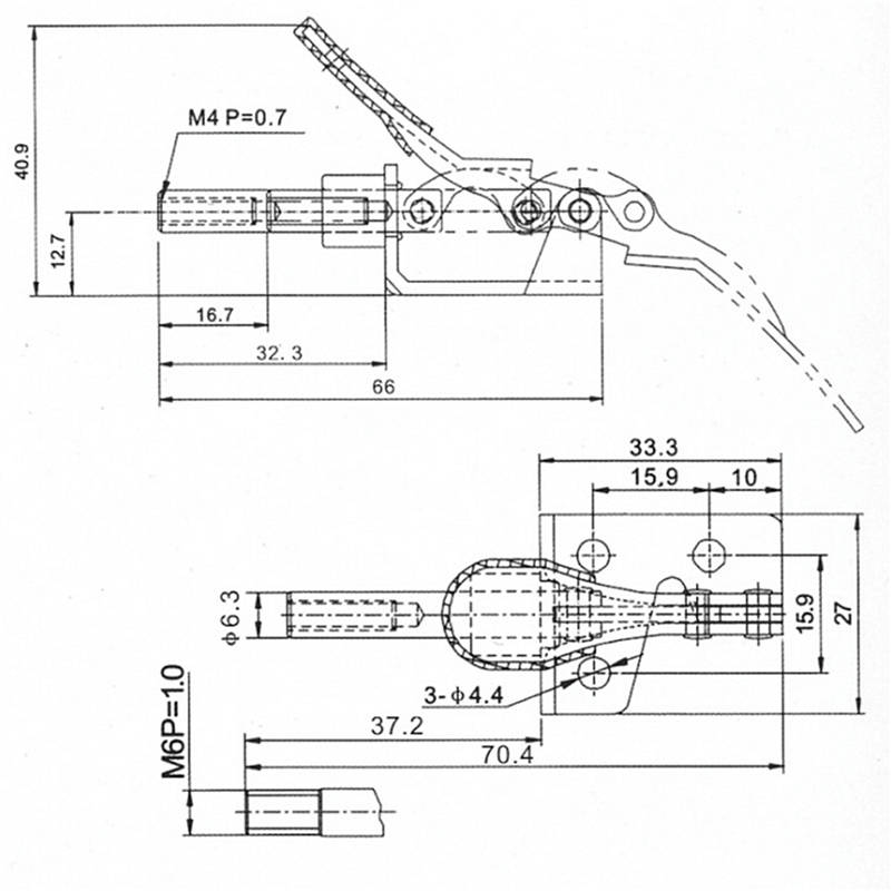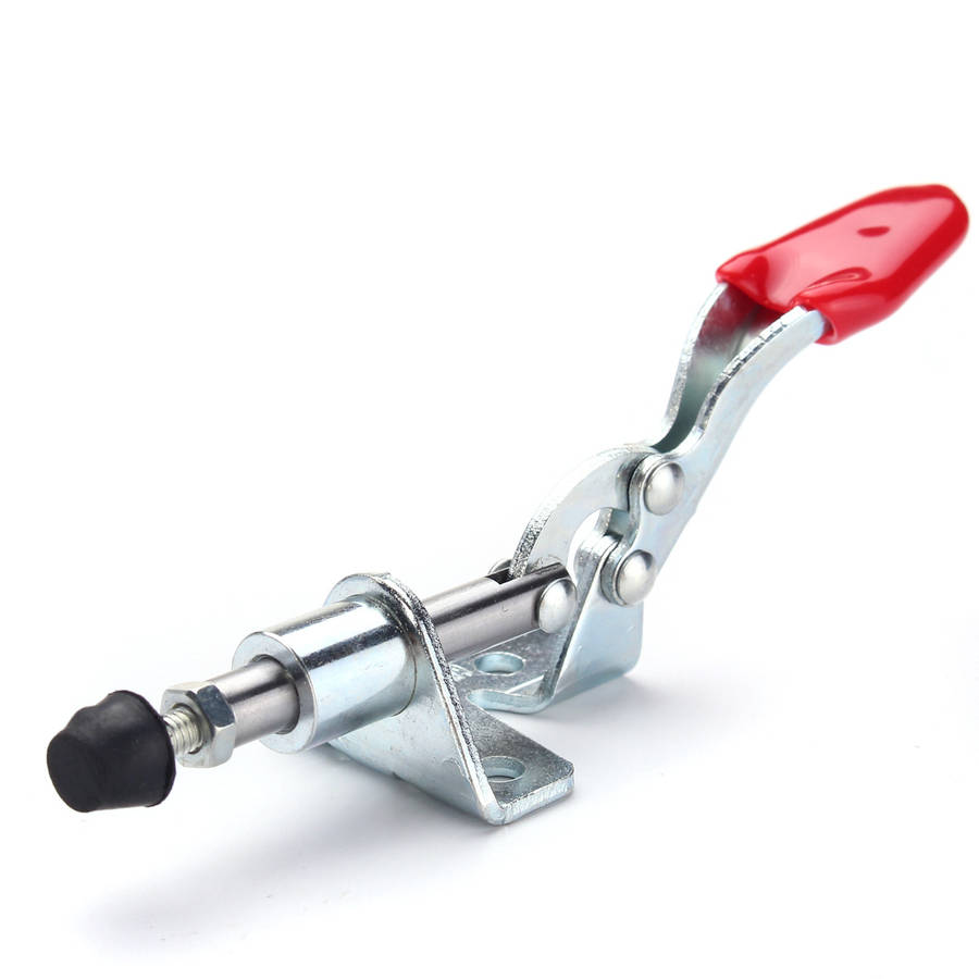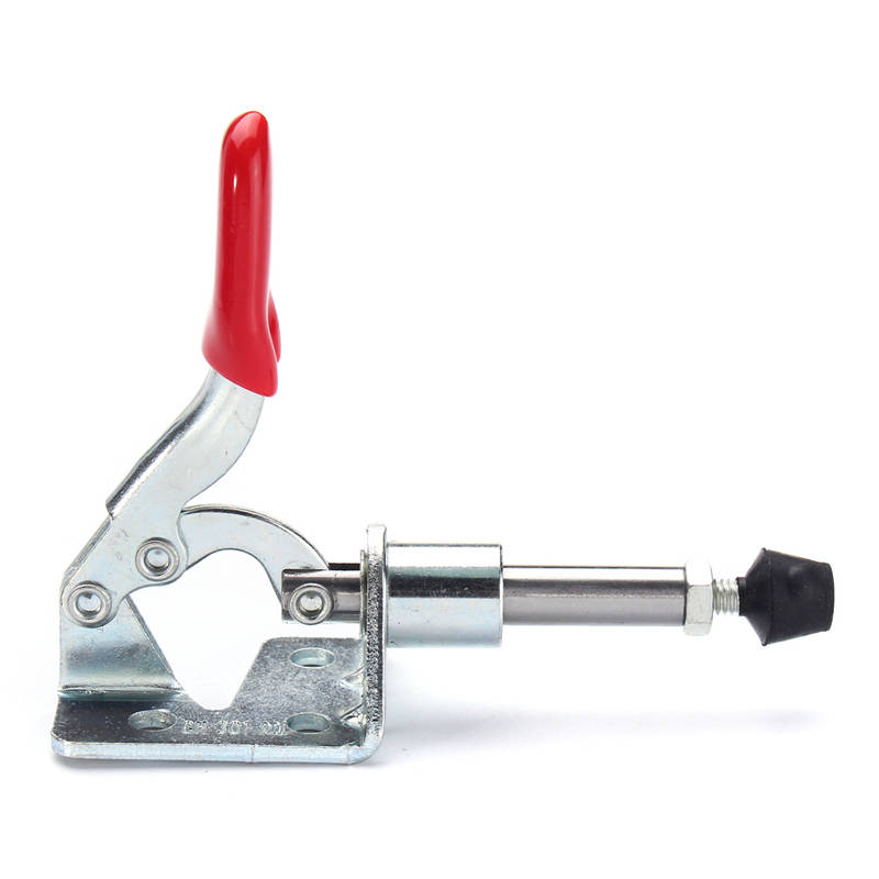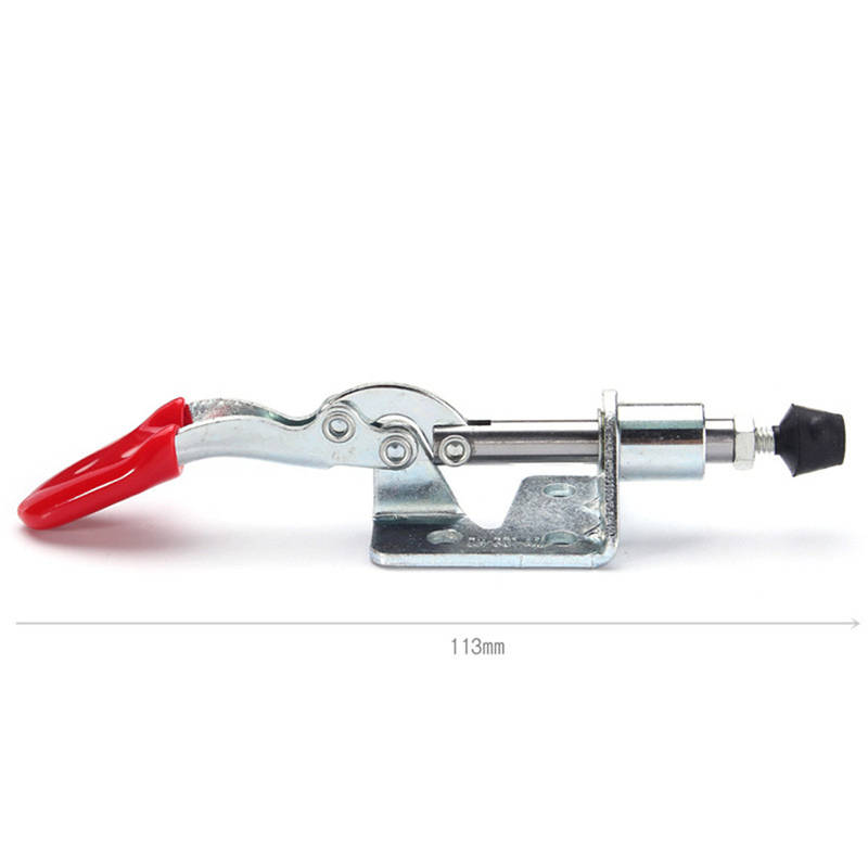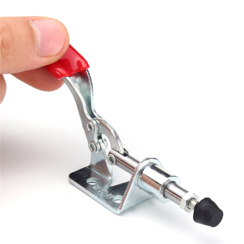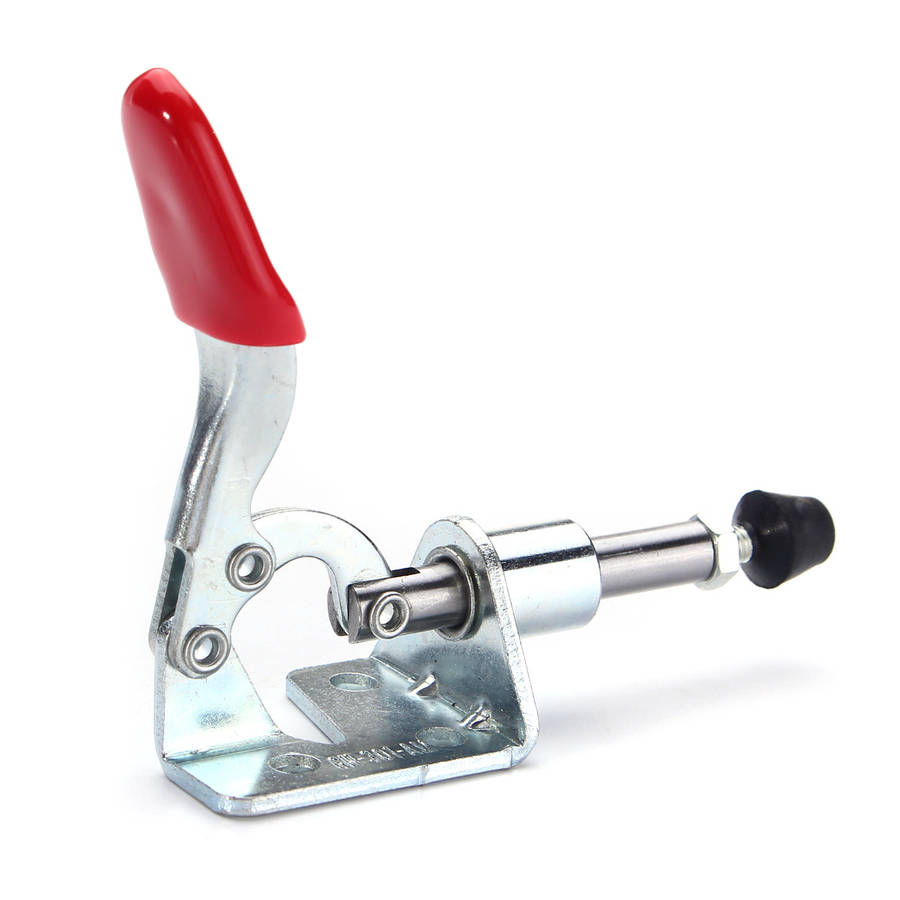 Specifications: --Material: Galvanized iron --16mm travel, 100 lbs holding capacity. --Oil and Stain resistant red vinyl hand grips. --Light-duty Plunger clamp that locks in extended or retracted position. Package Inlcluded: 1x Hand Tool Toggle Clamp Vertical Clamp