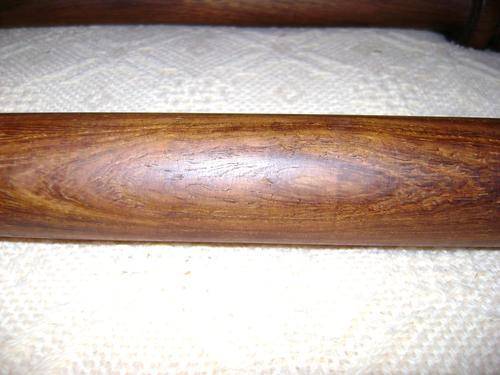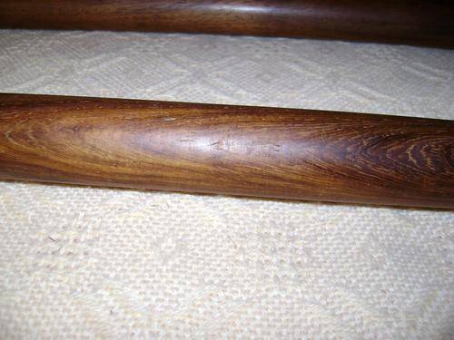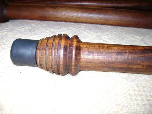 THIS WALKING STICK IS HAND TURNED AFRICAN KIAAT, I HAVE MADE IT SLIGHTLY THICKER THAN THE STANDARD WALKING STICK SO THAT YOU CAN GIVE THE BASTARD WHO WANTS TO ROB YOU WHILE YOU ARE WALKING SOME SERIOUS BRAIN DAMAGE!! IT WILL BREAK ANY SKULL!! IT HAS A GOOD LOOKING BLACK FLAT TOP HEAD THAT WILL LAST A LIFE TIME AND A RUBBER STOPPER AT THE BOTTOM END TO PREVENT SLIPPING. IT IS 85cms LONG AND CAN BE EASILY ALTERED.