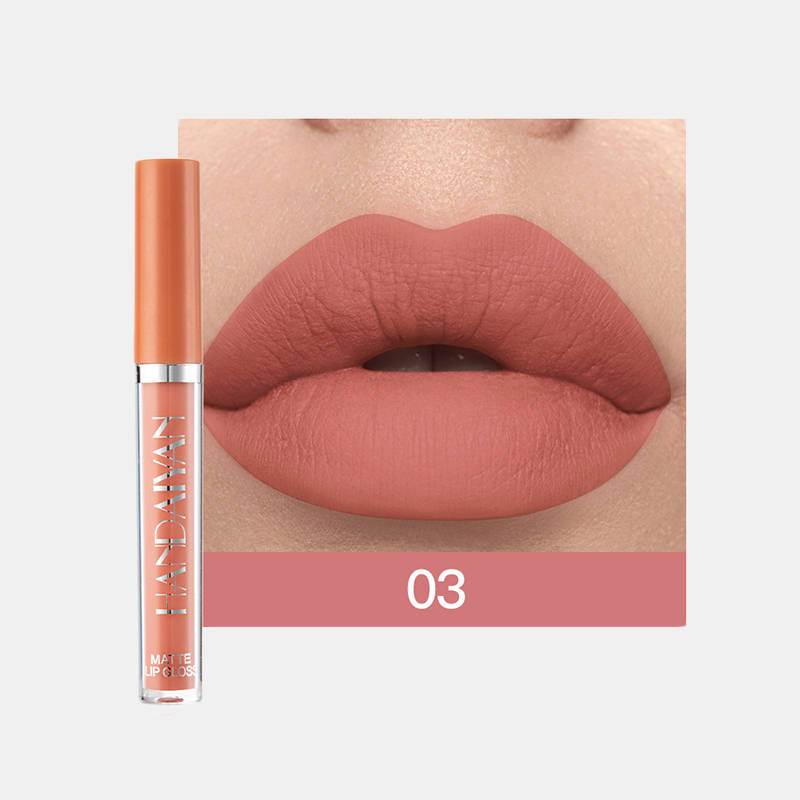 BRAND: HANDAIYAN Color : 12 Colors (Matte color ) Product Name : Lipgloss Effect : Waterproof ,long lasting Net Wt : 2.5ML*6PCS Shelf Life : 3 Years