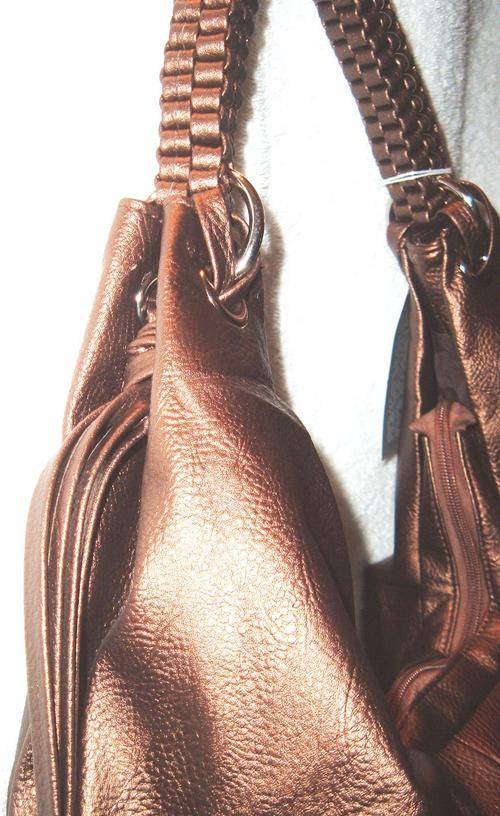 METALLIC COLOURED TOTE WITH WOVEN HANDLE