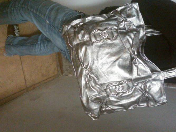 HANDBAGS IN GRAY WITH DARK ORANGE DOTS