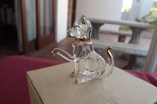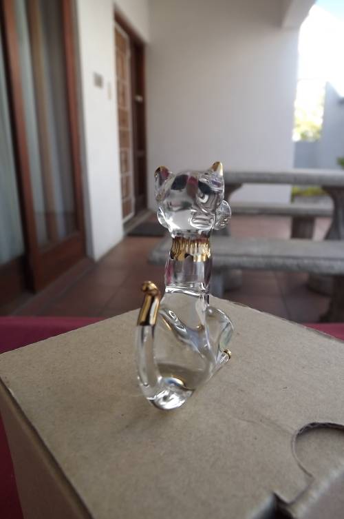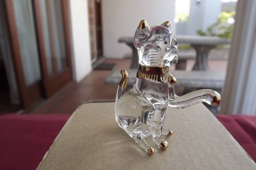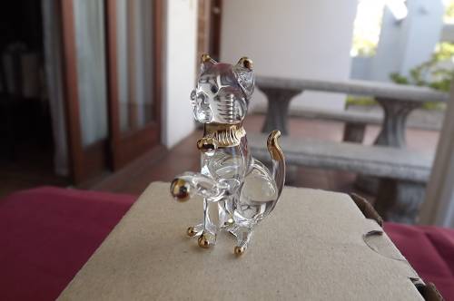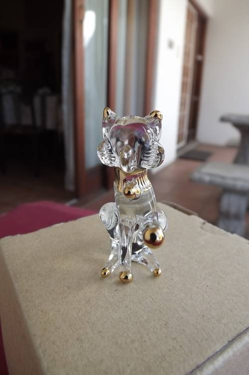 Handblown small glass cat with gilding.New item ,height 5 cm