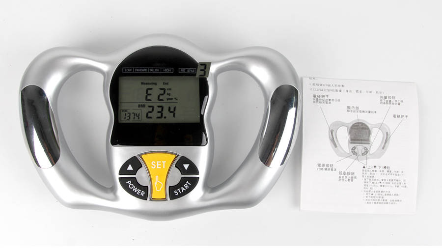- Wireless, handheld, lightweight, portable, easy to carry and use. - 9-person-profile memory. - Easy to read with large LCD screen. - Display the correct result in 6 seconds. - Measures your body fat percentage, BMI, body shape and basic metabolism. - After inputting your personal data, a measurement can be started by simply holding the grip electrodes and pressing the start button. Since the analyzer is built with a nine person profile memory, each member of your family or team can track the success of their individual exercise routines. - Body shape is categorized into: emaciated, standard, hide corpulent, muscle corpulent and corpulent. - Energy saving with auto shut-down function.