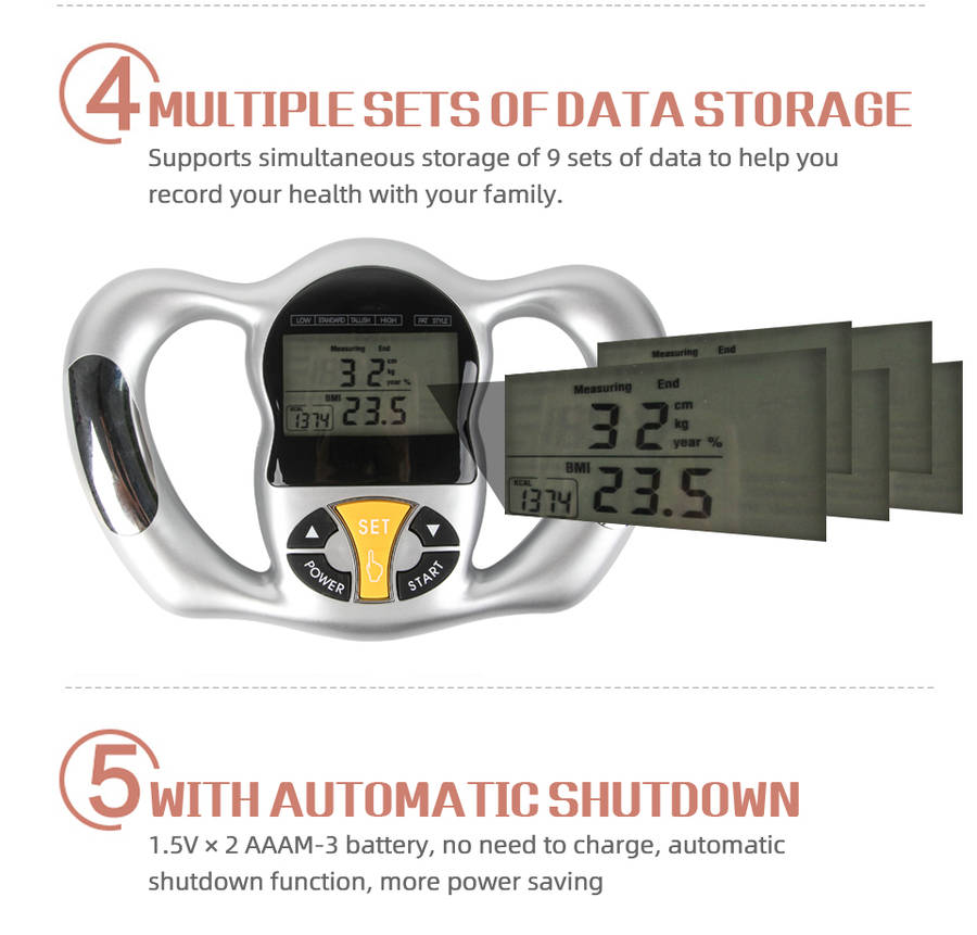 Handheld Body Fat Monitors LCD Screen Analyzer 6 Seconds Accurate BMI Meter Health Fat Easuring Instrument Features :